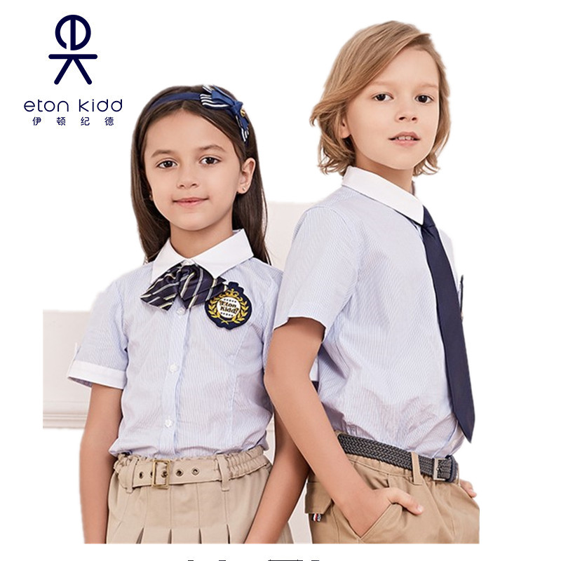 伊顿纪德校服男女生儿童短袖衬衣大童条纹衬衫10C110/10C220惠