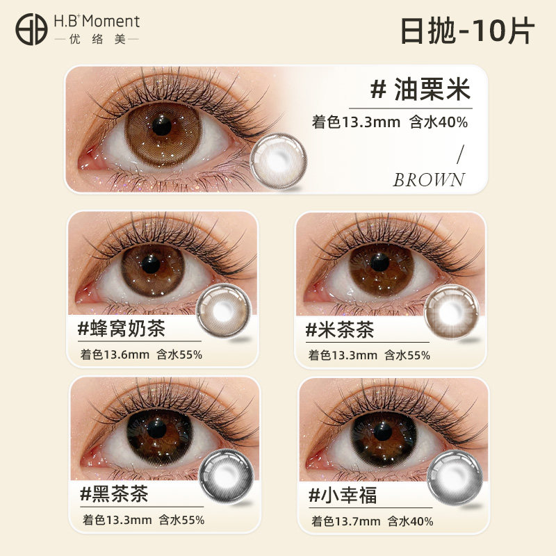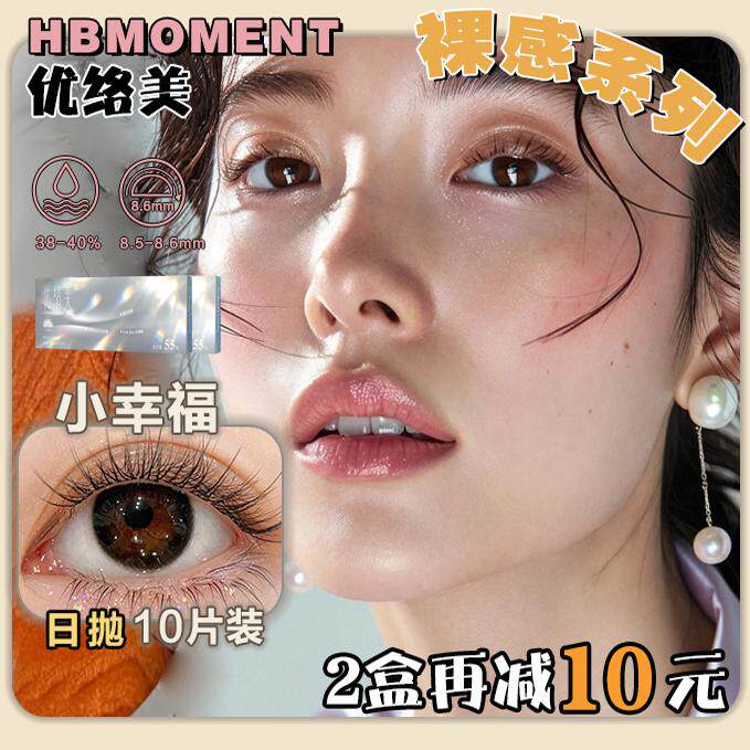 优络美裸感日抛美瞳10片装棕色小直径三明治工艺彩色隐形近视眼镜