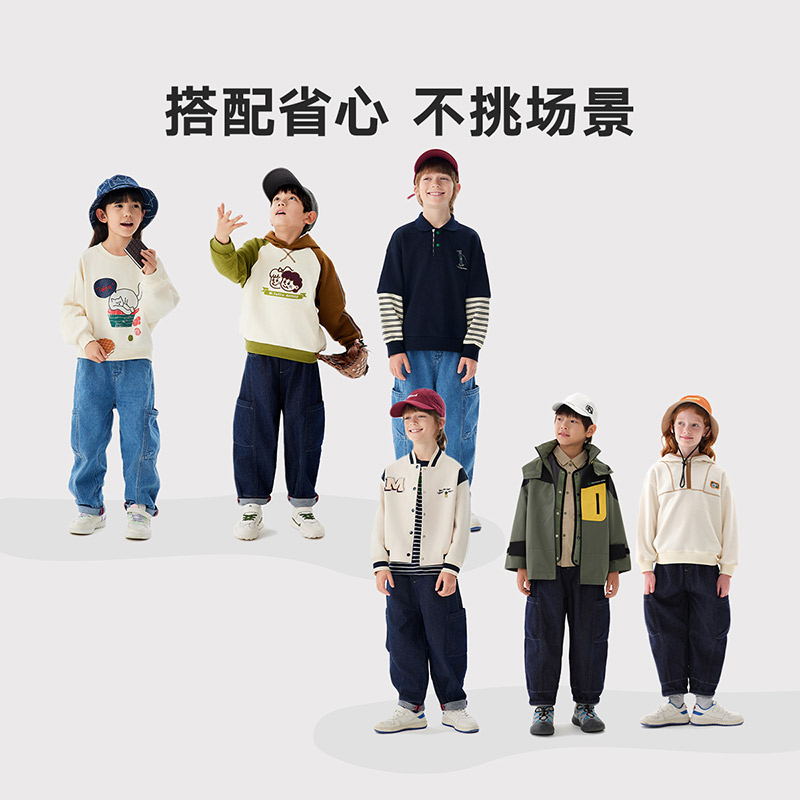 「大口袋成长裤」马拉丁儿童裤子秋款男大童日系松弛贴布牛仔裤