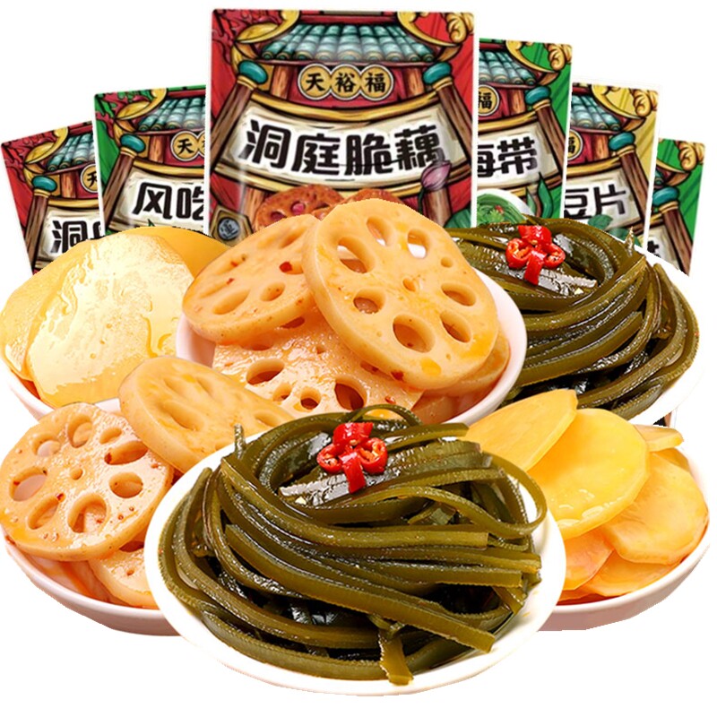 天裕福即食脆藕片辣卤味黑鸭海带丝香辣土豆片下饭菜零食小包装