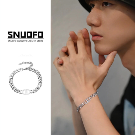 古巴手链男潮ins高级感痞帅嘻哈小众设计男士男生猪鼻子钛钢手饰