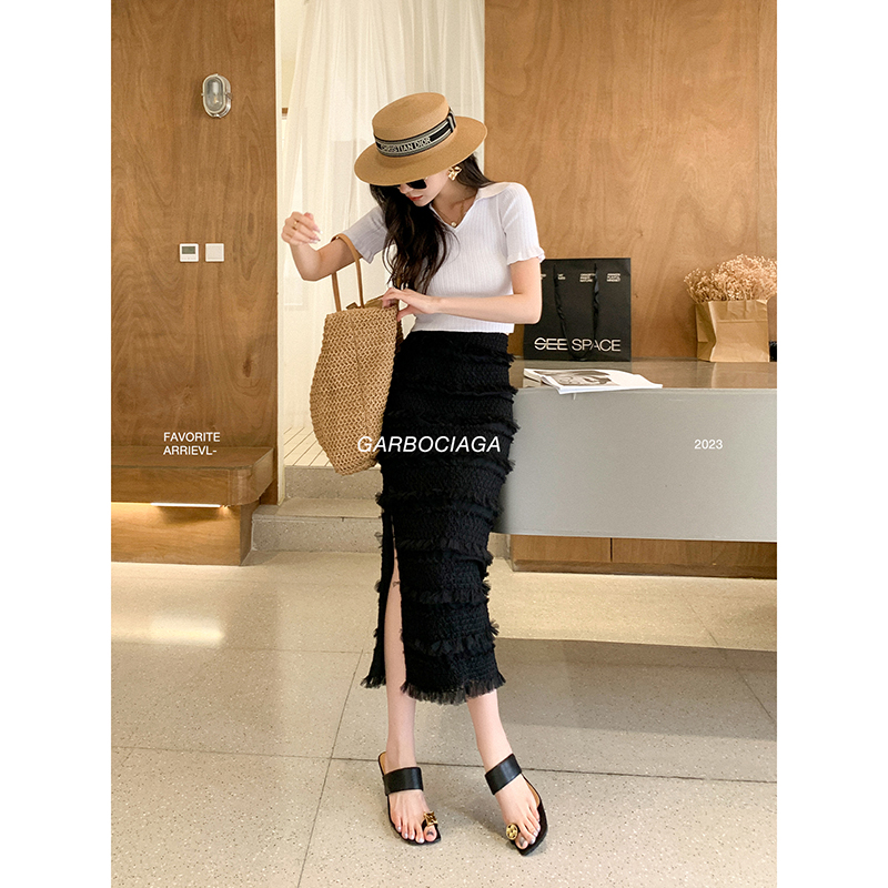 Garbociaga龍喜儿 摩登复古 立裁镂空后开衩高腰包臀半身裙女2475