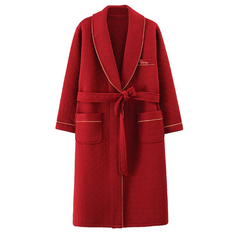 秋冬结婚新娘晨袍女秋冬款红色加厚情侣睡袍秋夹层男士睡衣1009c