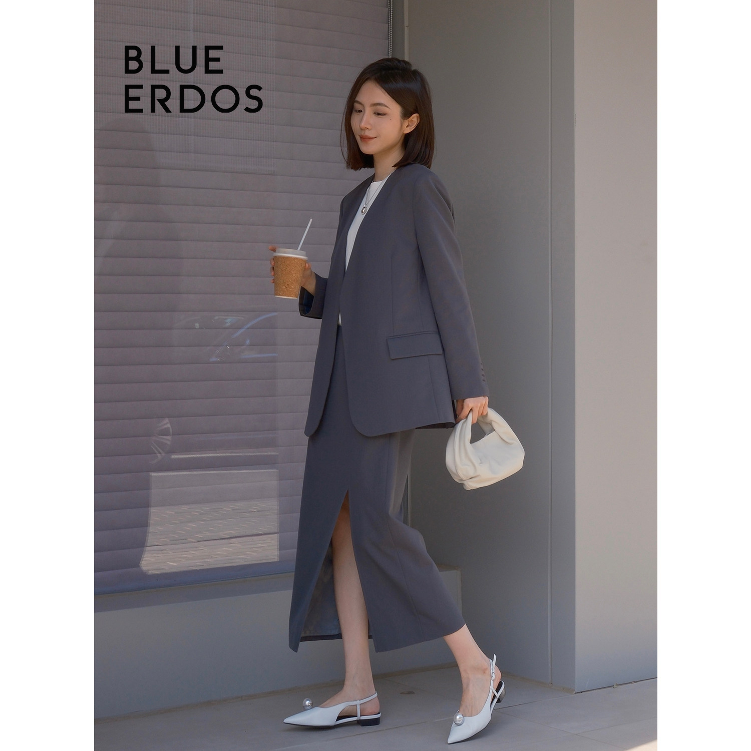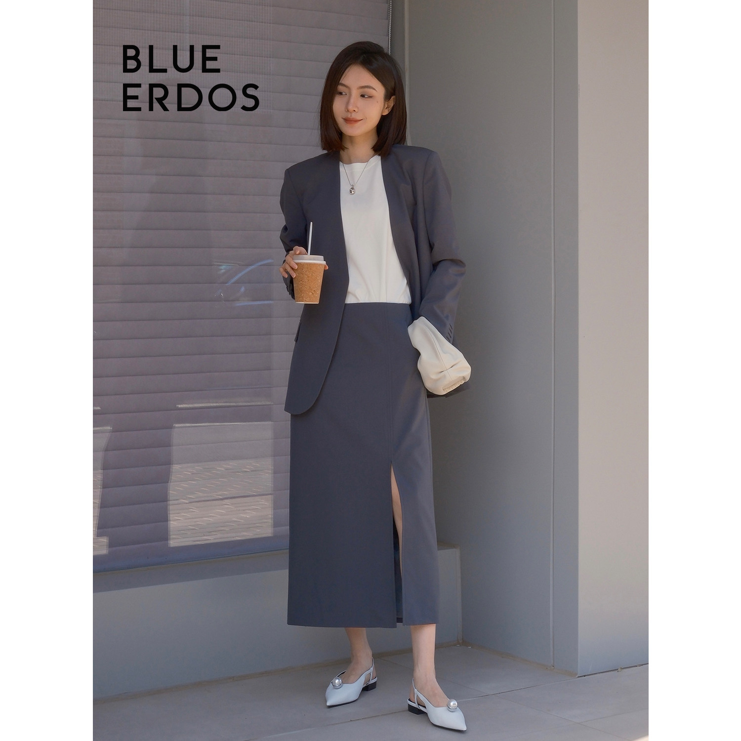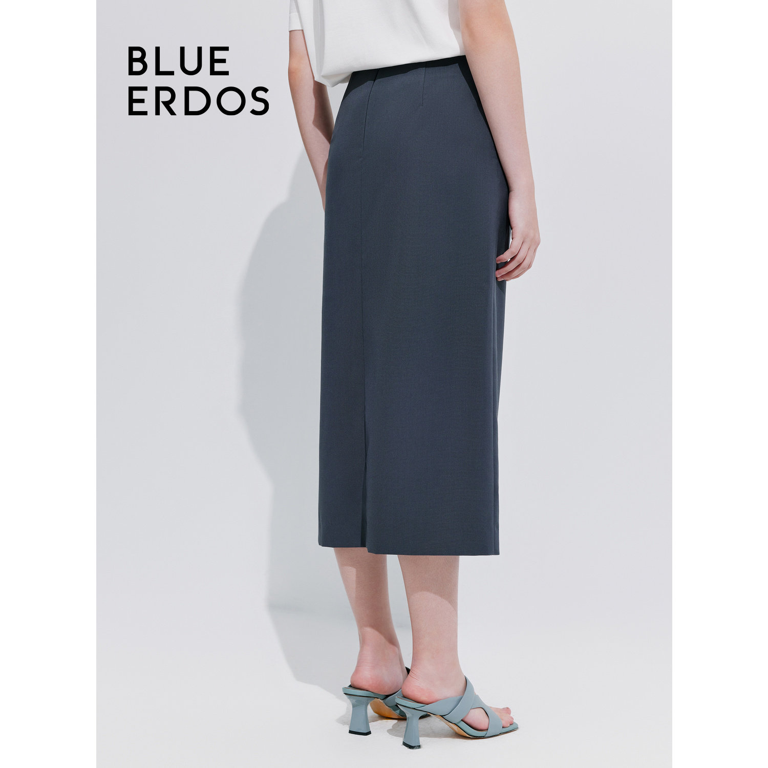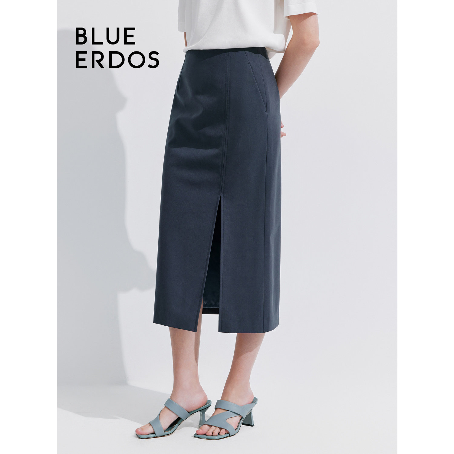BLUE ERDOS简约气质侧开叉羊毛混纺半身裙女B245M0008