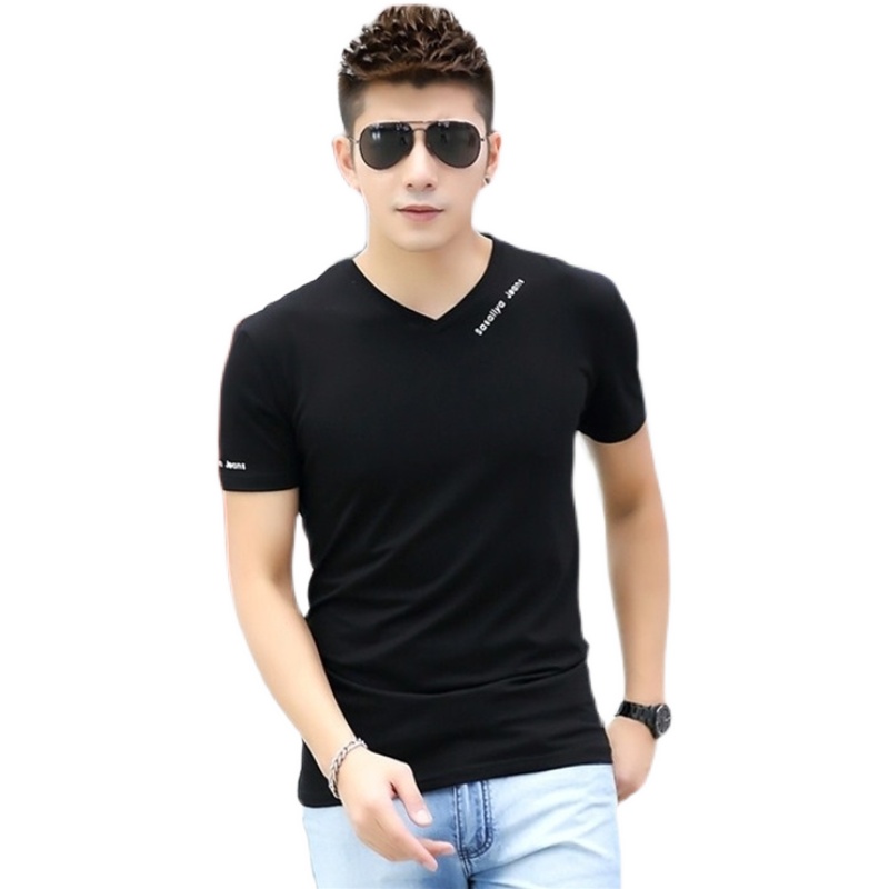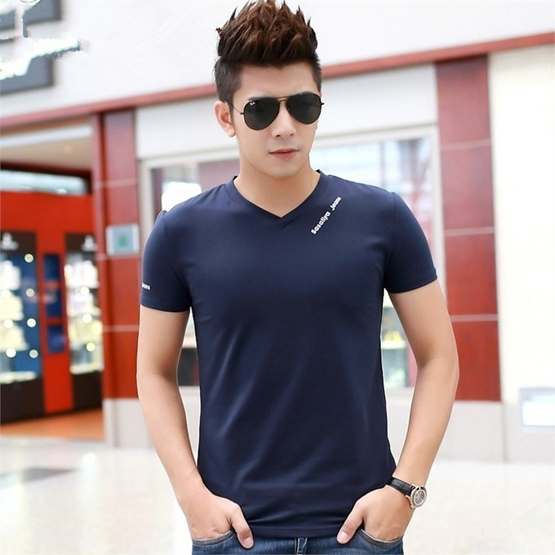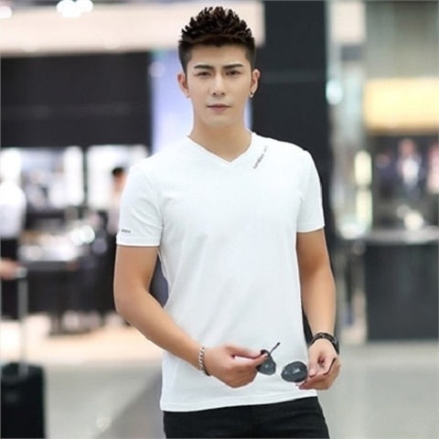 男士短袖t恤修身V领上衣鸡心领男装大码半袖夏季短衫韩版休闲体恤
