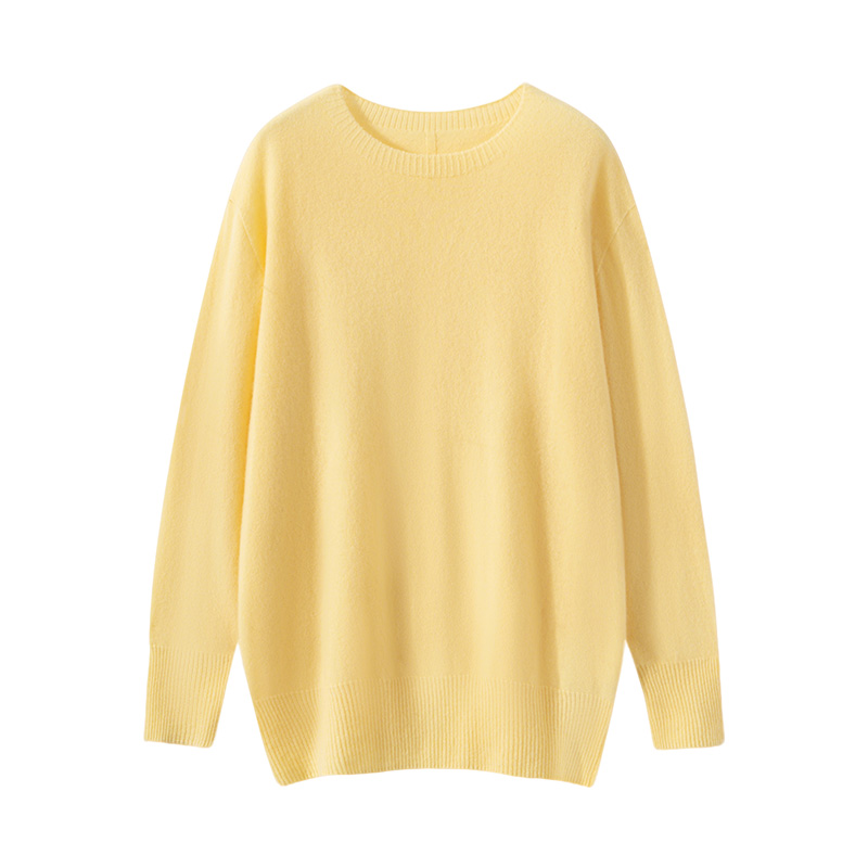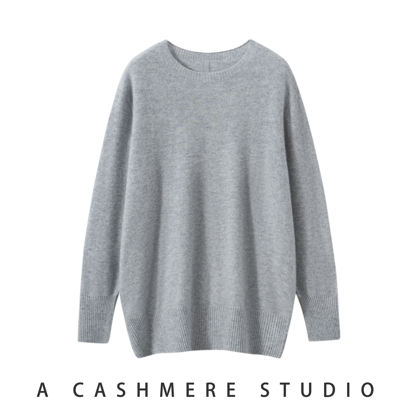 秋冬新款100%纯山羊绒衫女圆领宽松针织衫时尚百搭毛衣套头打底衫