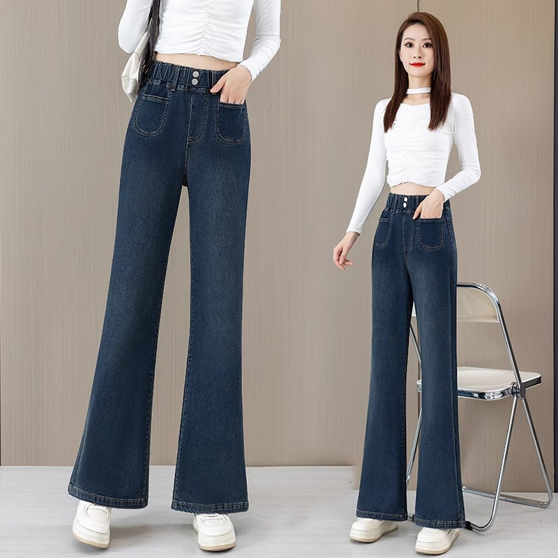 松紧腰微喇牛仔裤女加绒2025新款直筒宽松大码胖mm显瘦复古喇叭裤