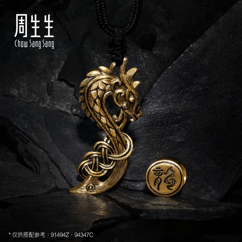 周生生官方正品NOIR酷黑系列龙颈饰黄金足金吊坠颈链送男友91494Z