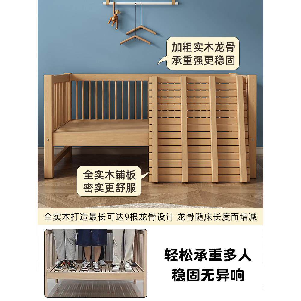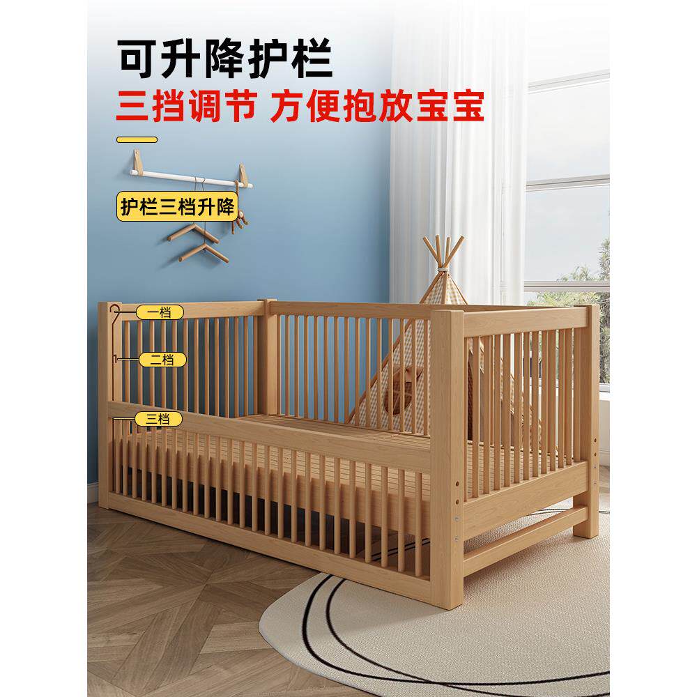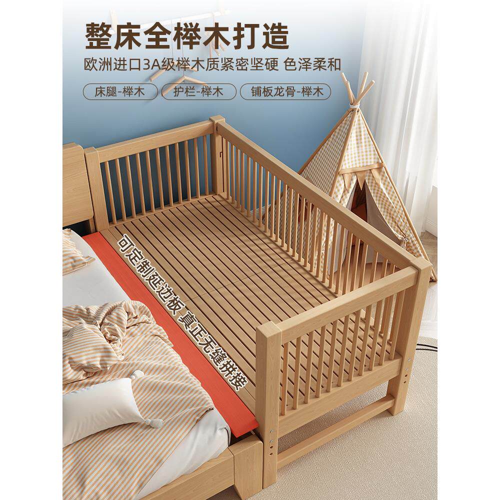护栏可升降儿童床实木婴儿床宝宝小床拼接大床榉木大人床边加宽床