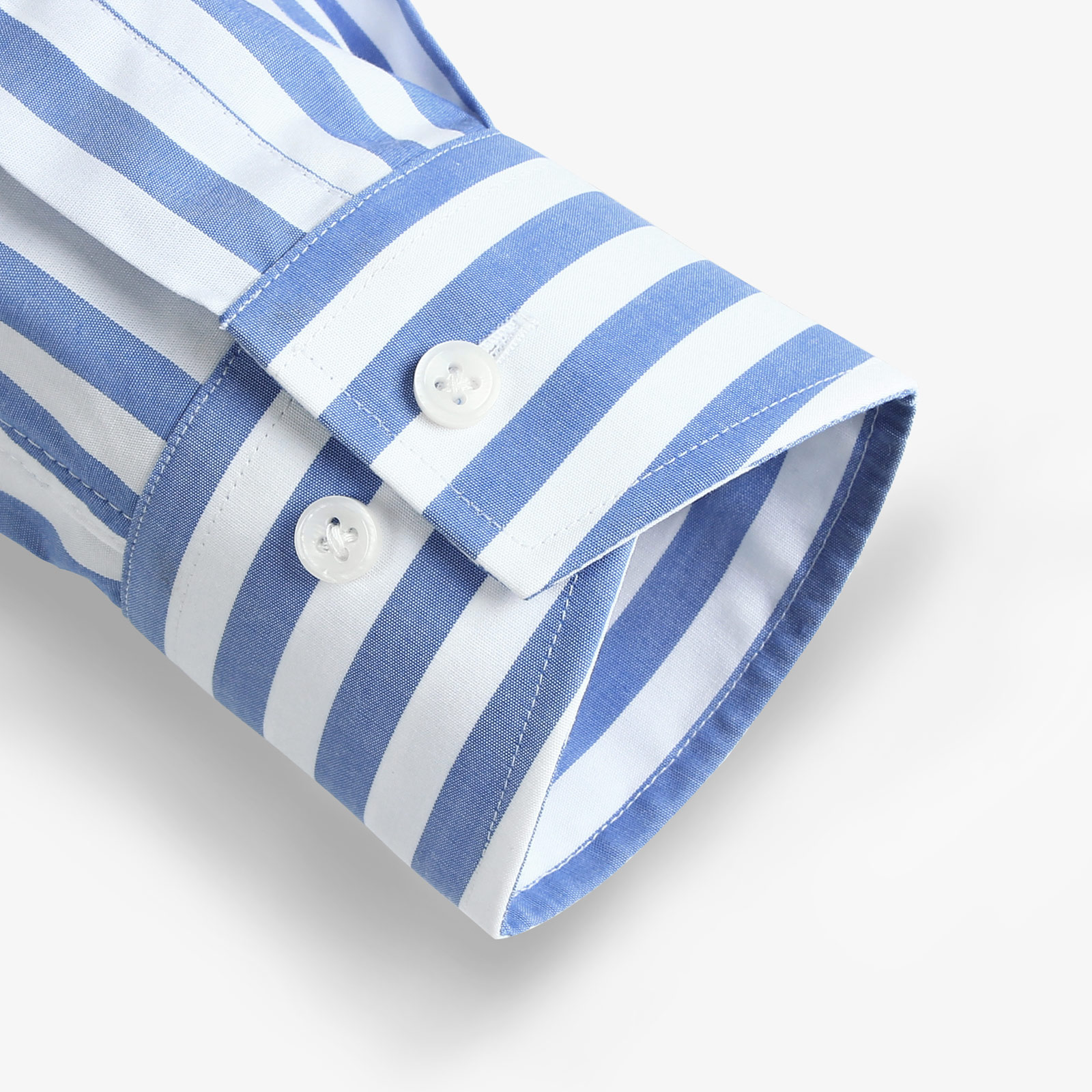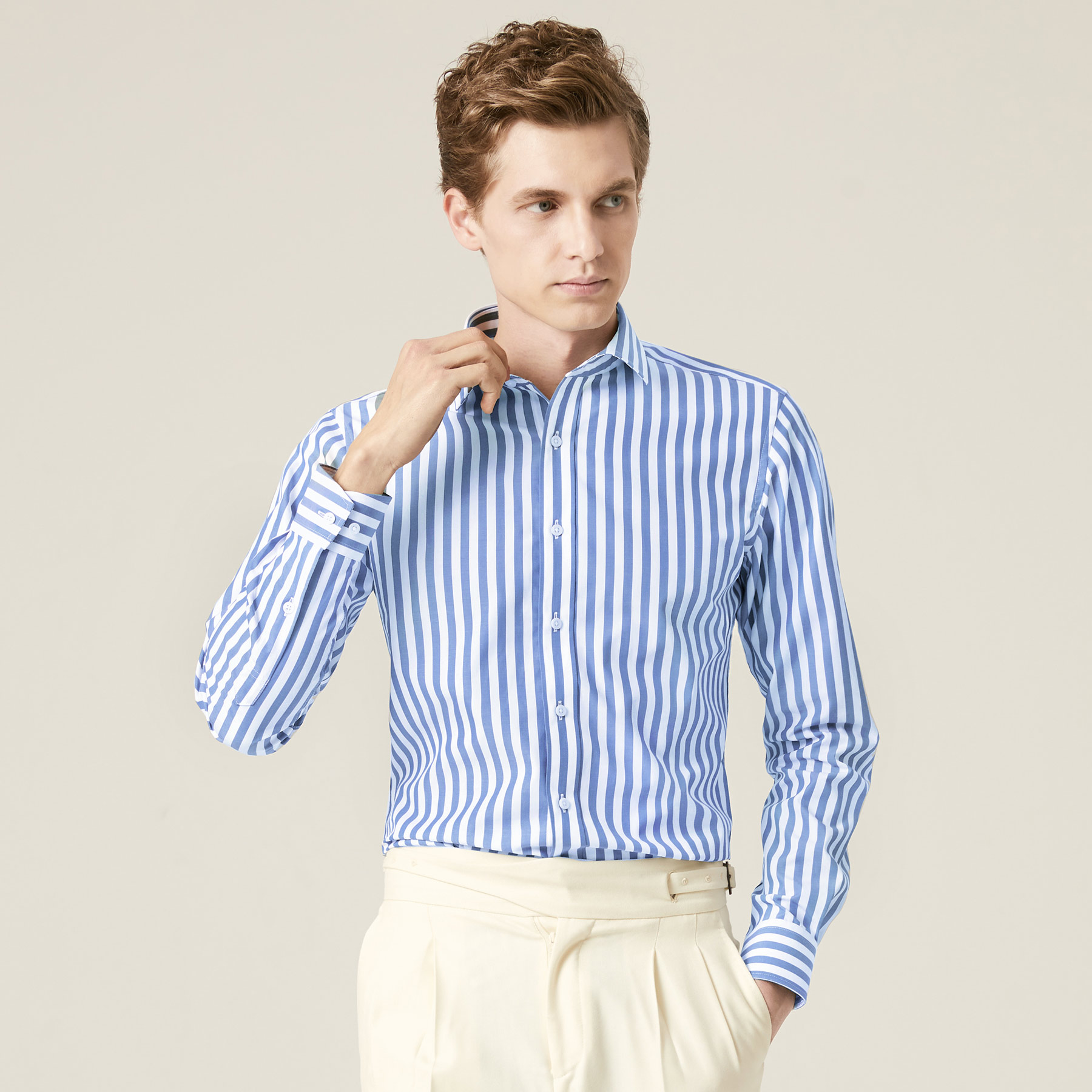 粗条纹痞帅衬衣男款长袖春秋时尚休闲蓝白条纹衬衫温莎领潮流上装