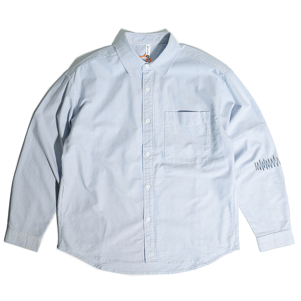 港风痞帅拼接刺绣条纹牛津纺衬衫