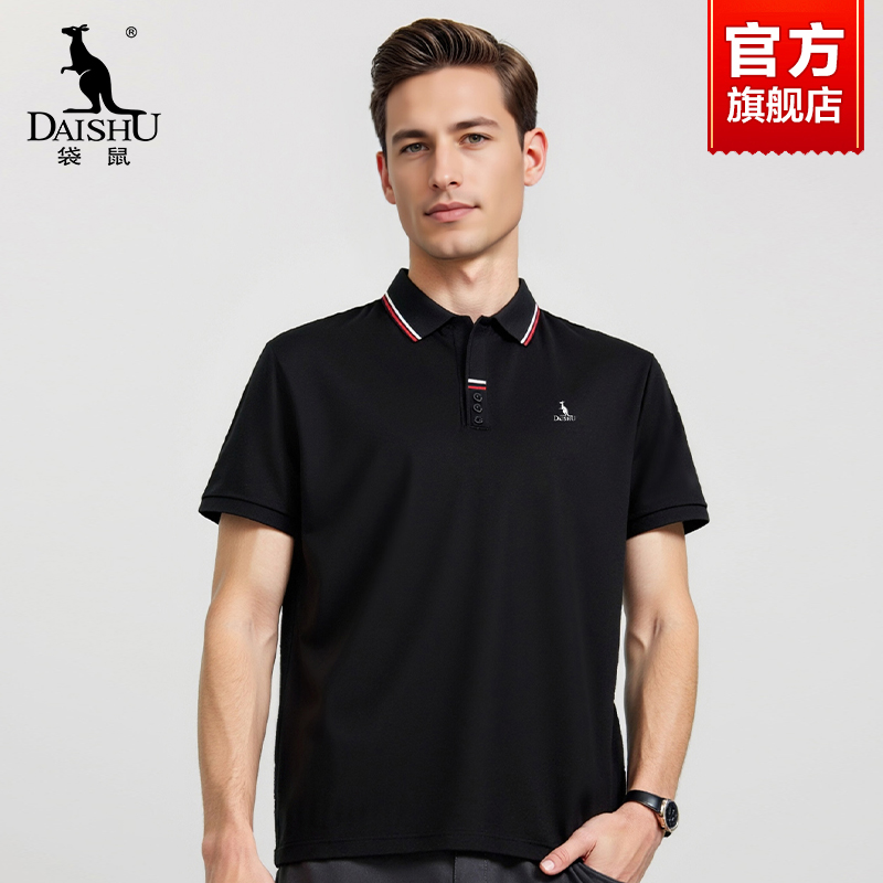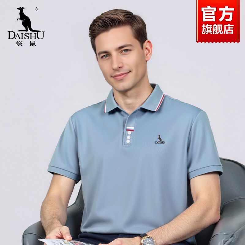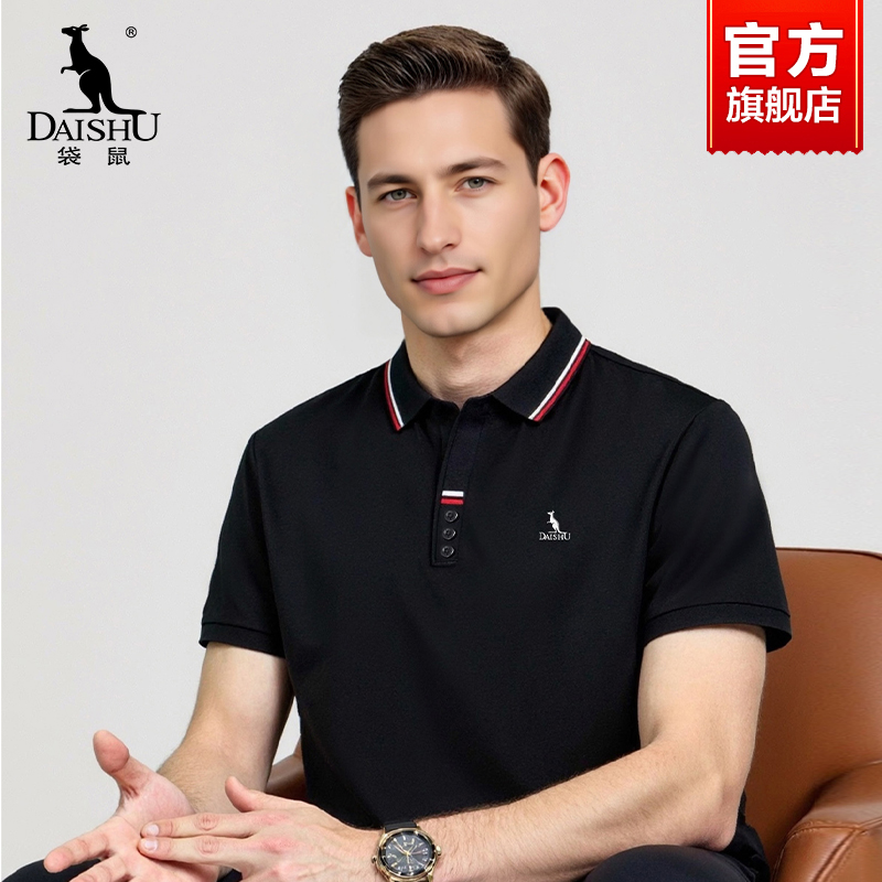 袋鼠短袖t恤男桑蚕丝POLO衫夏季2025新款纯色翻领半袖休闲体恤男