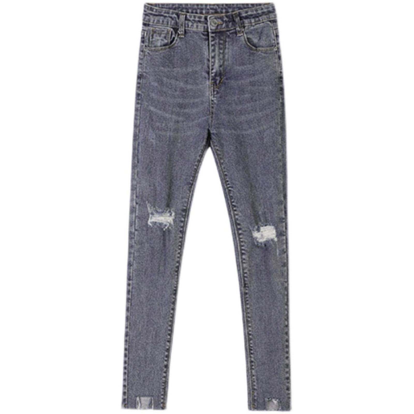 SPYB破洞牛仔裤女春秋2025年新款高腰修身显瘦九分裤子小脚铅笔裤
