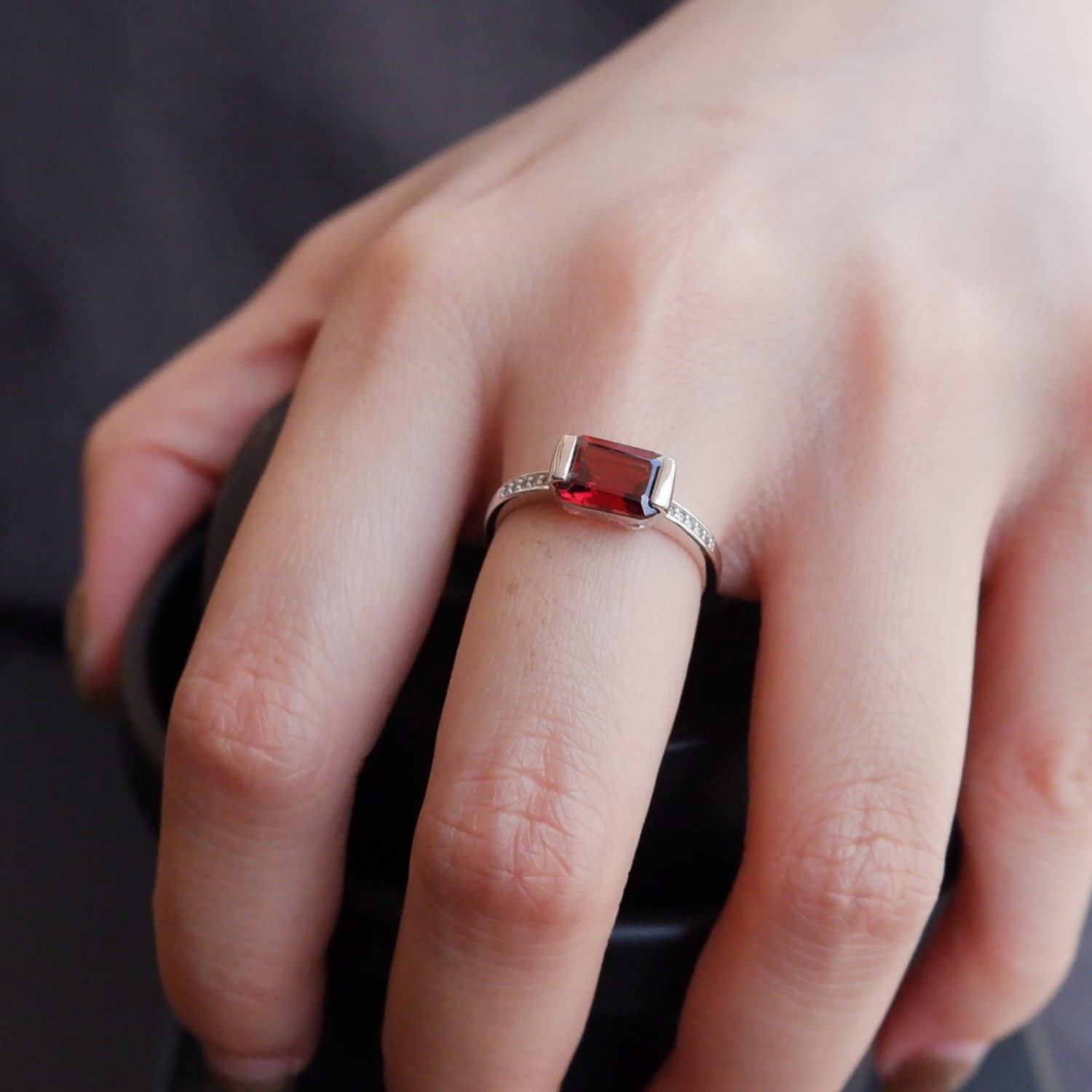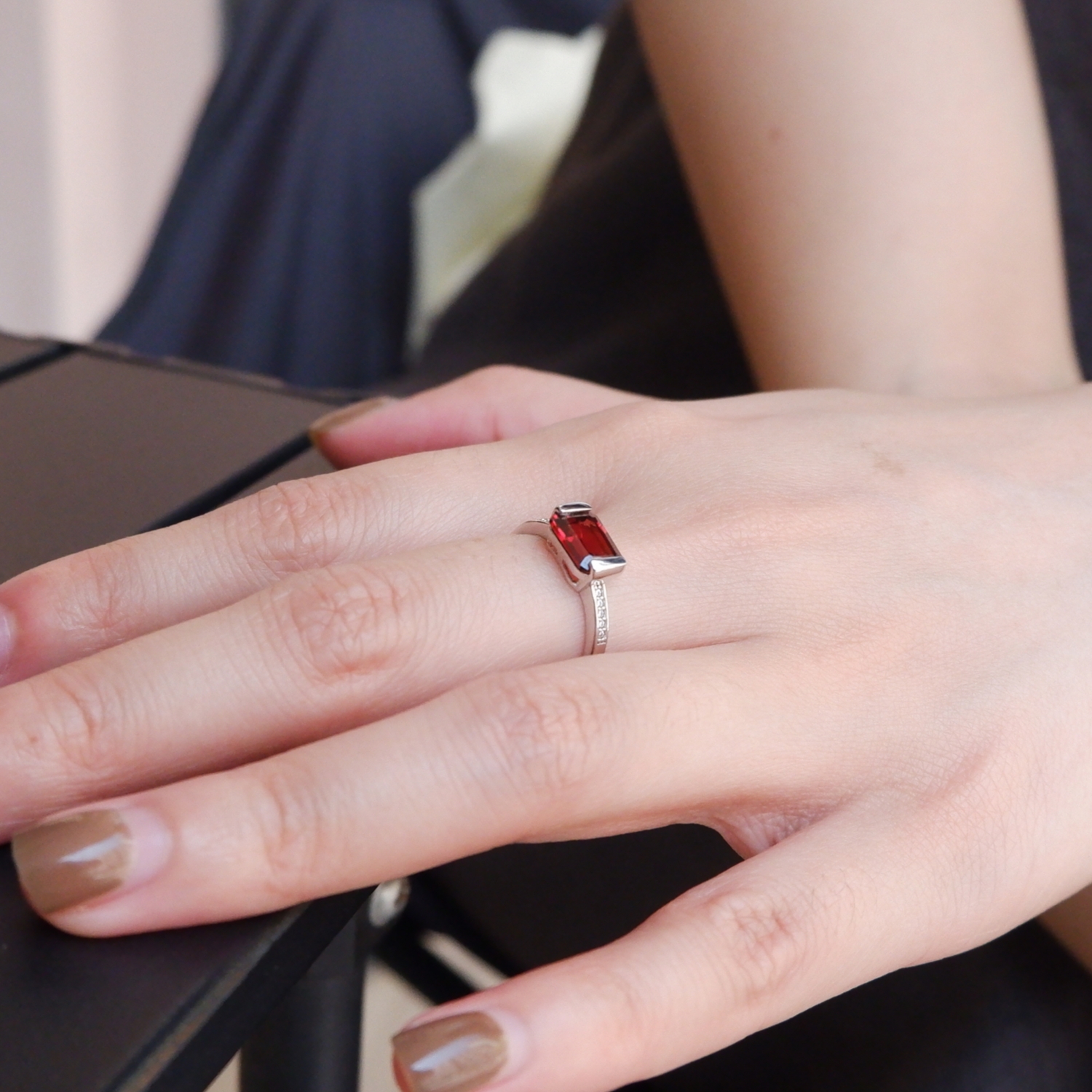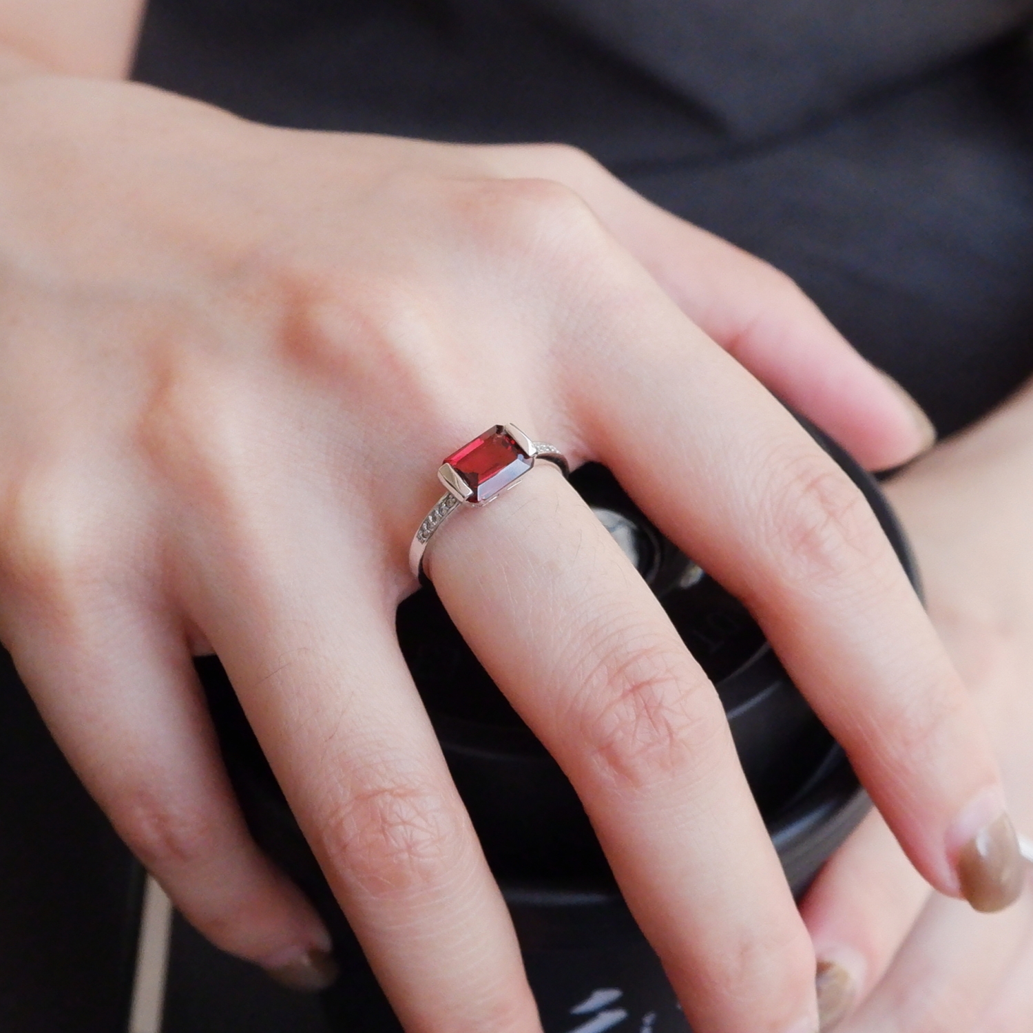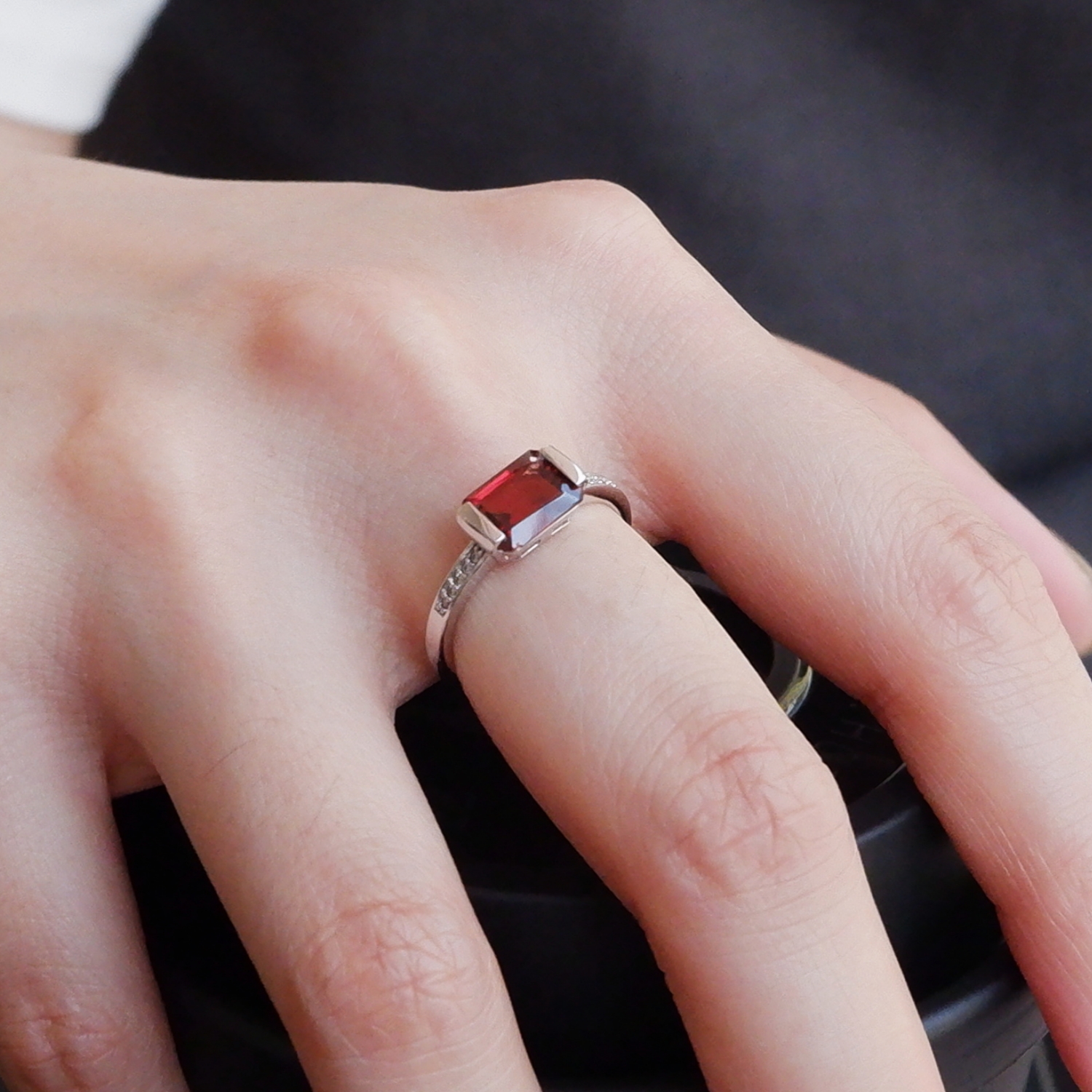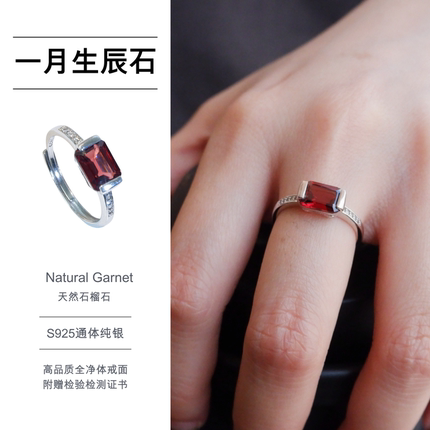 原创设计水晶戒指女天然酒红色石榴石戒指复古气质宝石高级感手饰