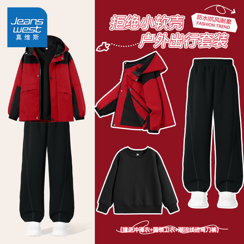 真维斯童装男童春秋款套装男大童2026新款防水冲锋衣儿童潮流裤子