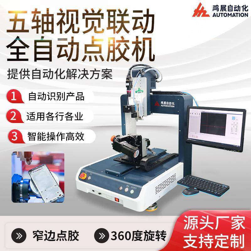 全自动点胶机联动视觉五轴VR眼镜鼠标热熔胶点漆上色喷胶机