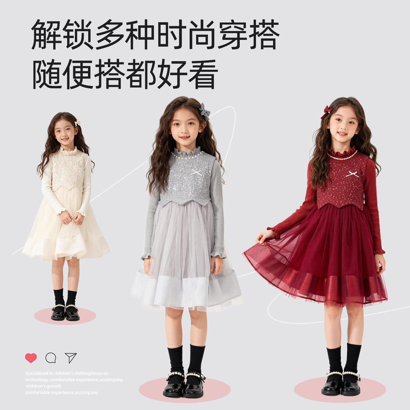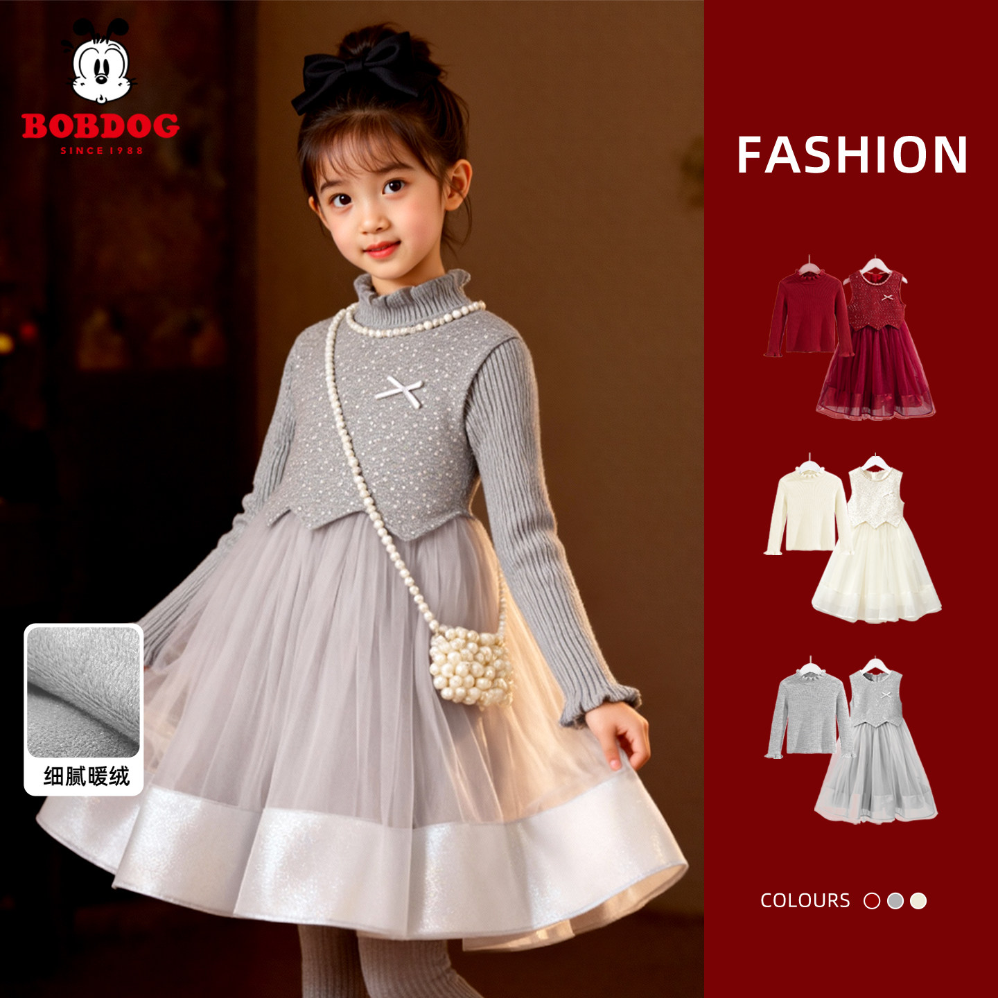巴布豆女童秋冬连衣裙两件套过年服加绒公主裙2026新款儿童背心裙