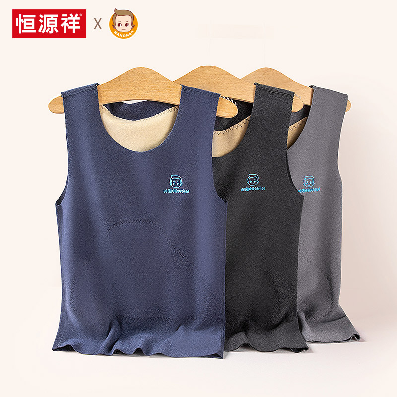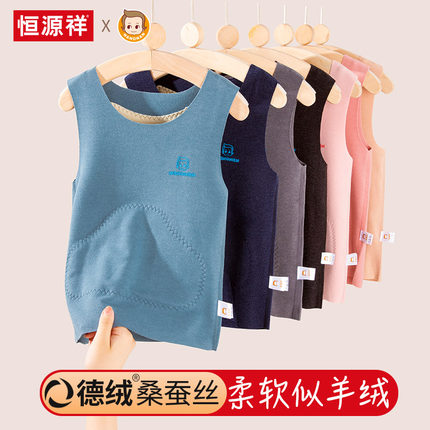 恒源祥儿童德绒保暖背心打底内穿男童女童男孩加绒马甲男冬季加厚