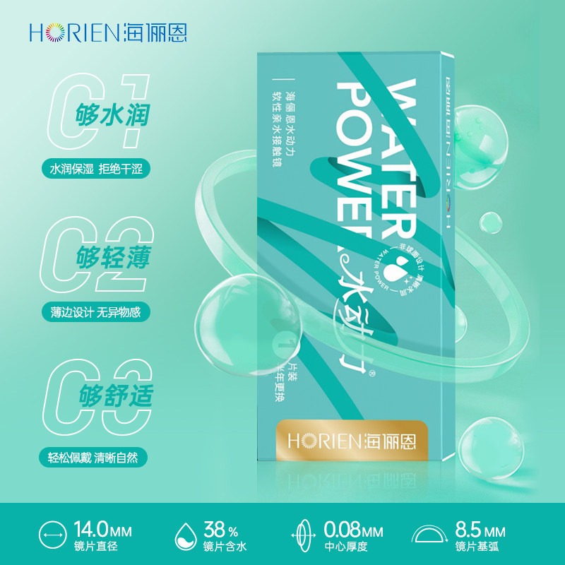 海昌海俪恩半年抛隐形眼镜1片 水动力透明近视单片防紫外线抗uv