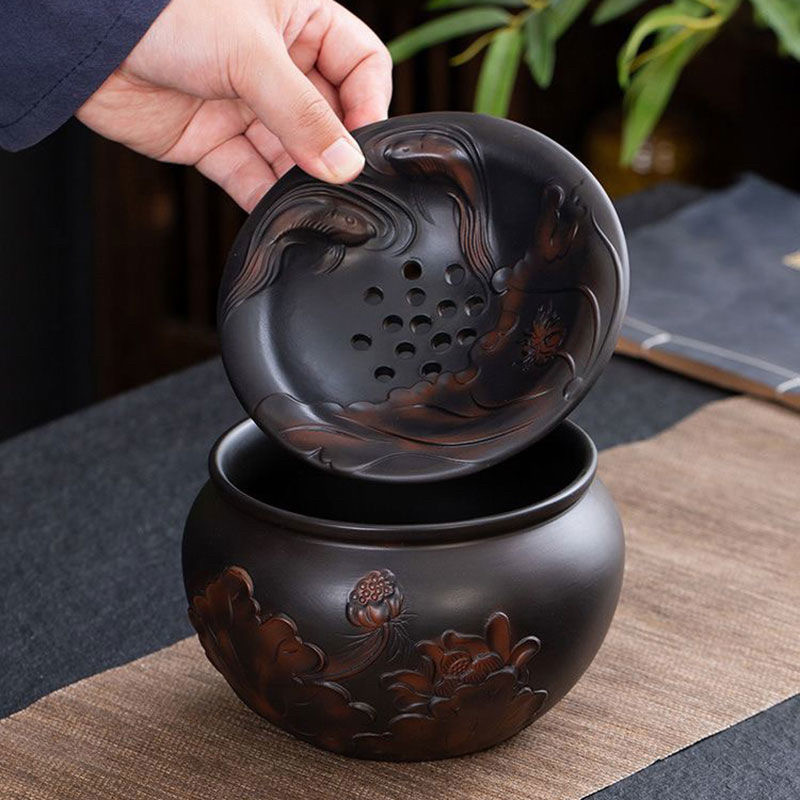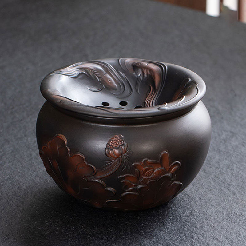 紫陶复古水盂茶洗建水茶渣分离废水缸家用大号粗陶过滤茶水茶渣缸