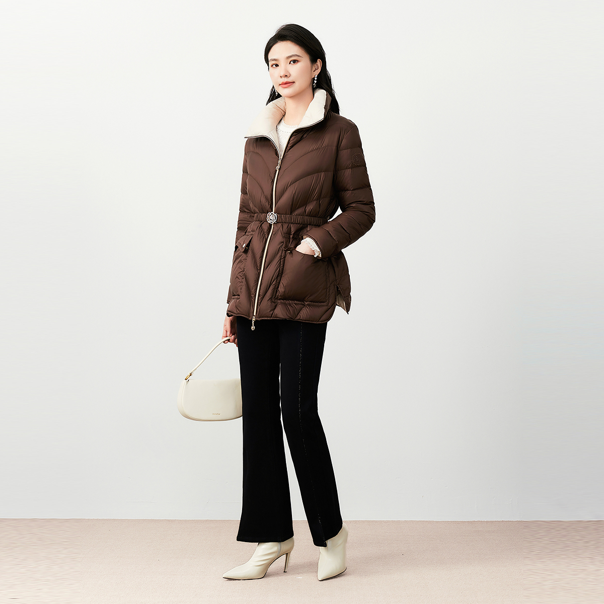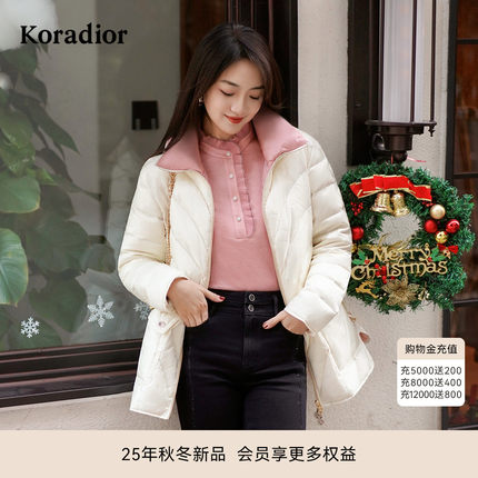 珂莱蒂尔koradior冬季款鹅绒羽绒服女士保暖防寒通勤外套中长款