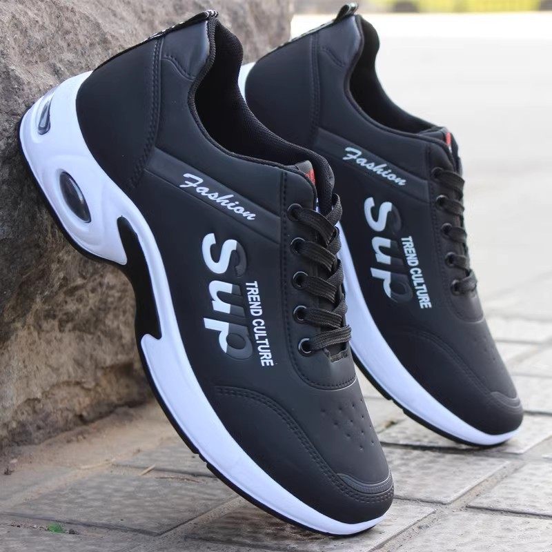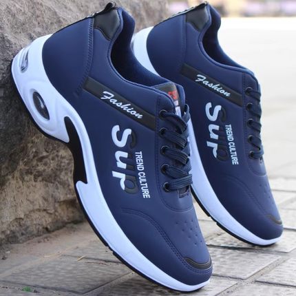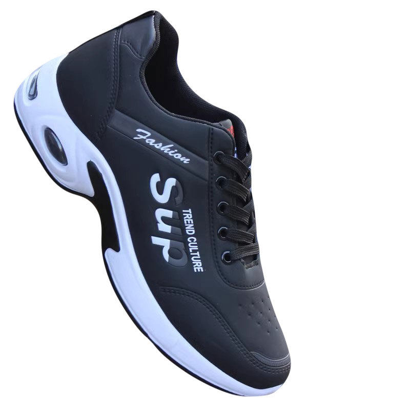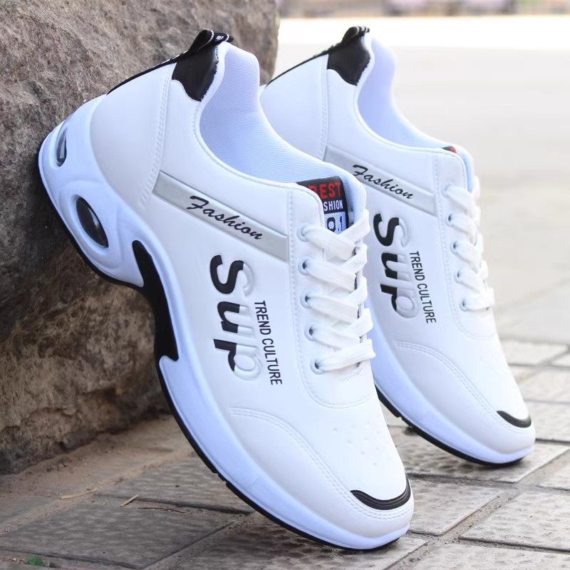 2025春季内增高男鞋子皮面防水耐磨防滑运动鞋男式休闲厚底跑步鞋