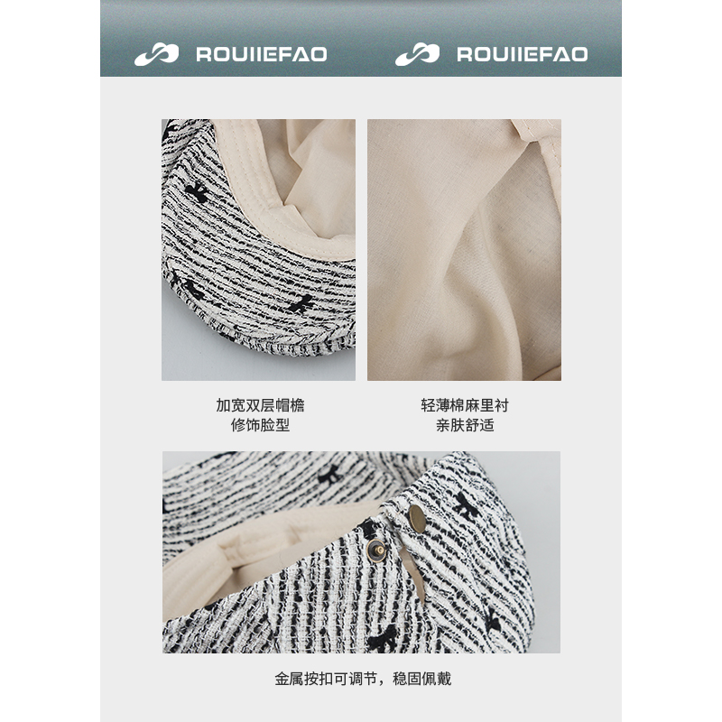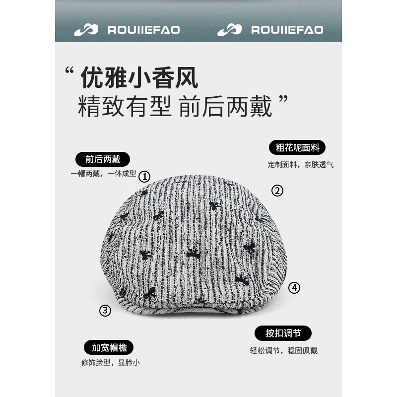 设计师款重工蝴蝶结条纹前进帽女百搭显脸小反戴鸭舌帽报童贝雷帽