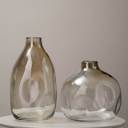 轻奢特大号不规则花瓶 手工透明玻璃花器客厅插花日本吊钟马醉木
