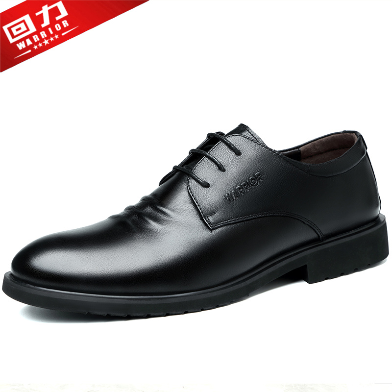 回力青年黑色商务皮鞋男士韩版休闲内增高真皮正装透气中年男鞋子