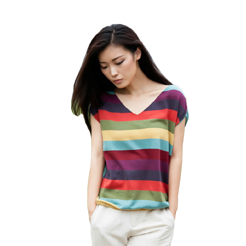特价2021夏装新款大码彩虹条纹薄