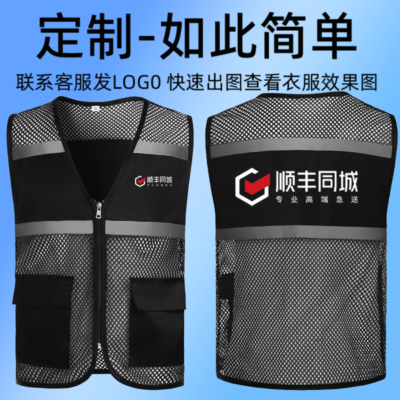 顺丰同城急送马甲工作服印字logo快递物流工衣广告马夹网格红背心