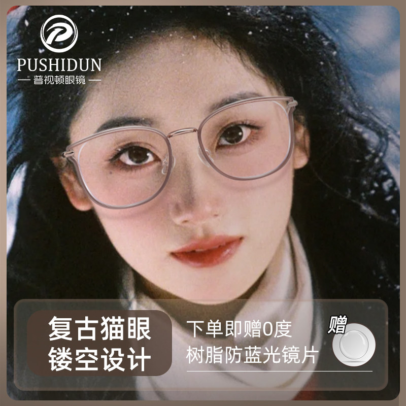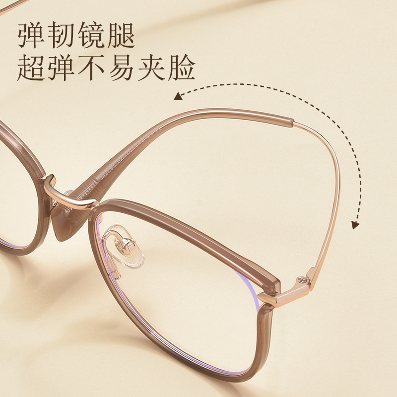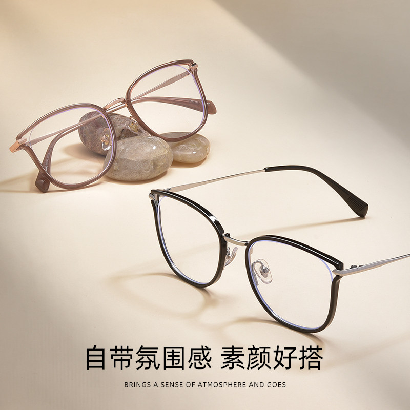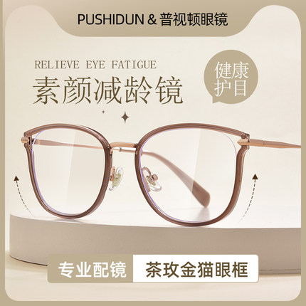 猫眼茶色近视眼镜框女可配度数防蓝光平光方圆脸显瘦素颜神器镜架