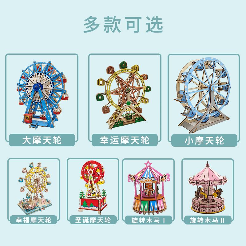 儿童女孩diy手工制作3d立体拼图木质摩天轮模型拼装益智玩具木制