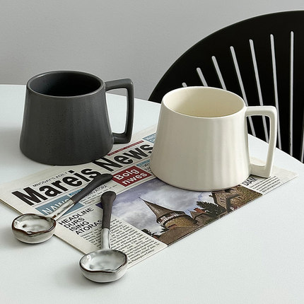 复古咖啡杯ins风下午茶陶瓷杯高级感小众杯子马克杯带勺家用办公
