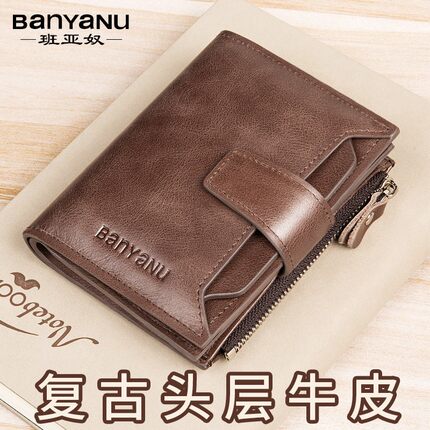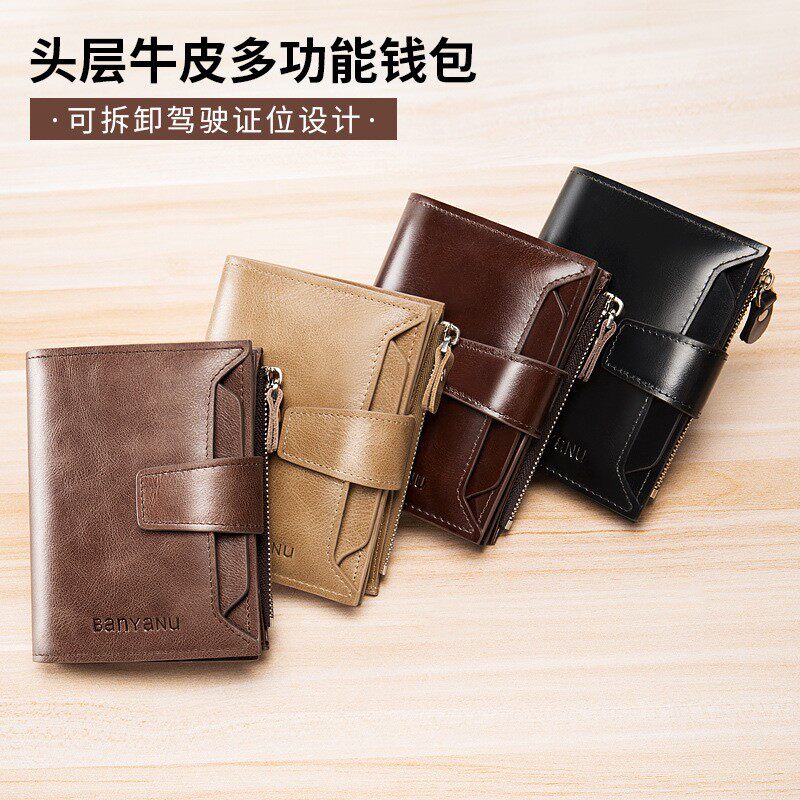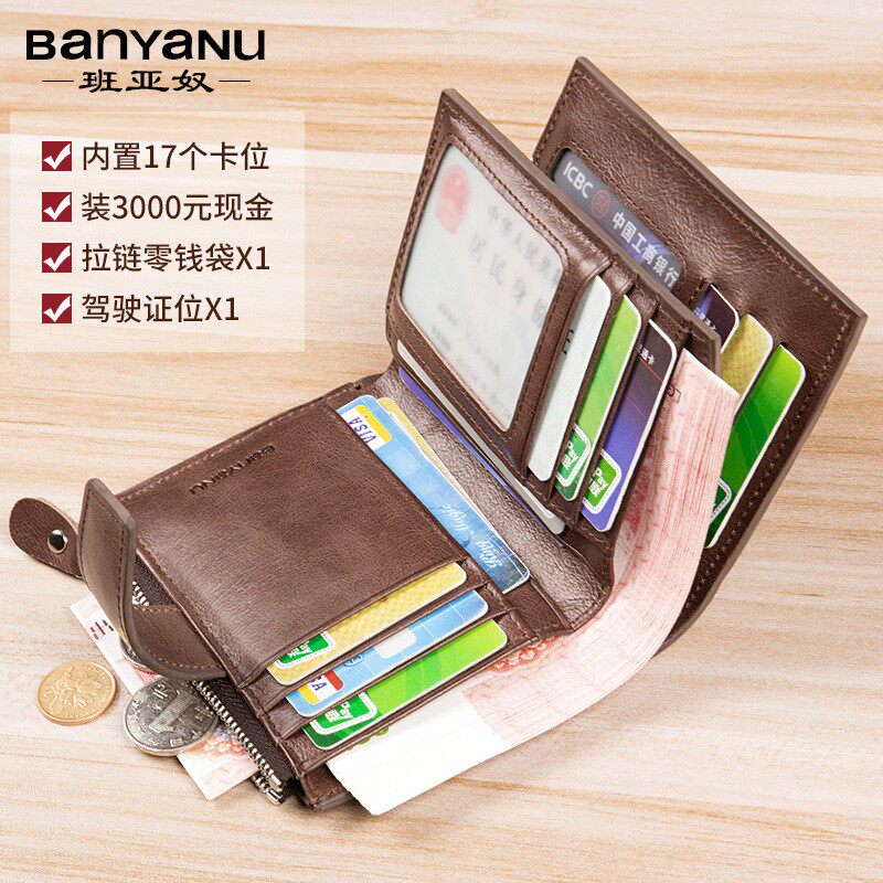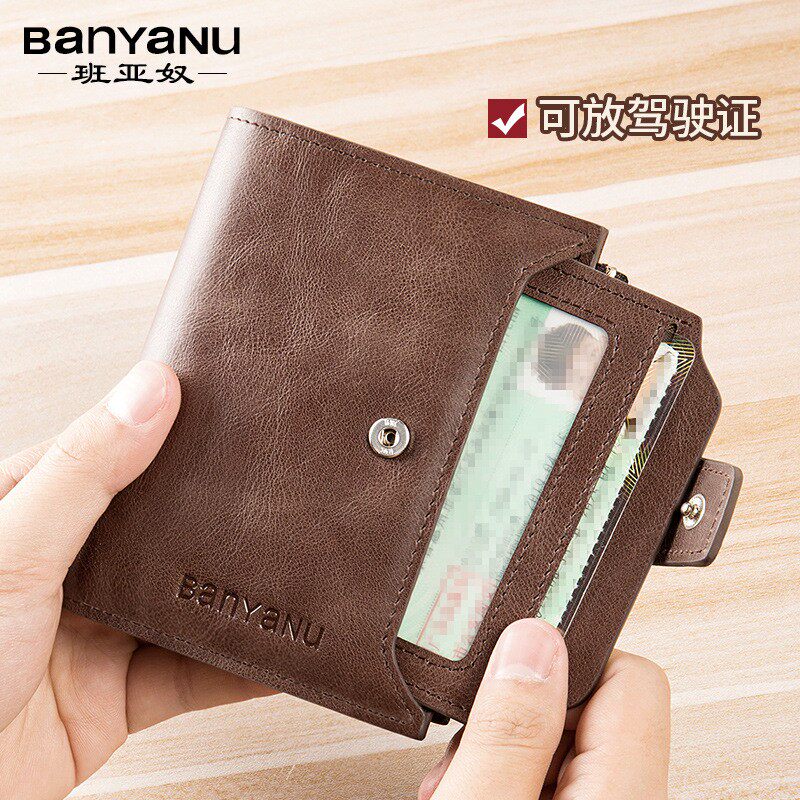 班亚奴2025新款钱包男短款真皮牛皮大容量男式驾驶证多功能男士皮