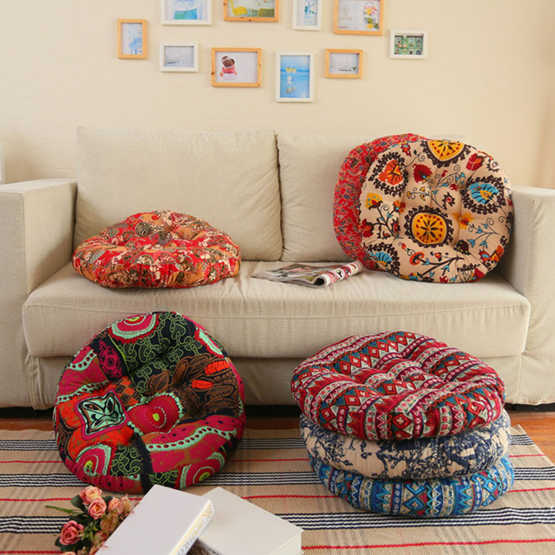 棉麻复古民族风蒲团美臀坐垫加厚布艺圆形阳台飘窗榻榻米地板打坐