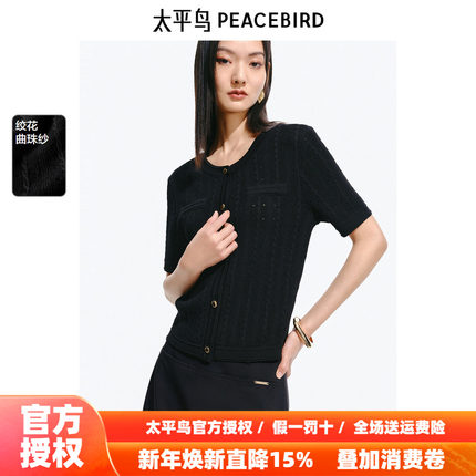 太平鸟曲珠纱短袖针织衫2025秋装新款女士黑金小香风透气上衣毛衣