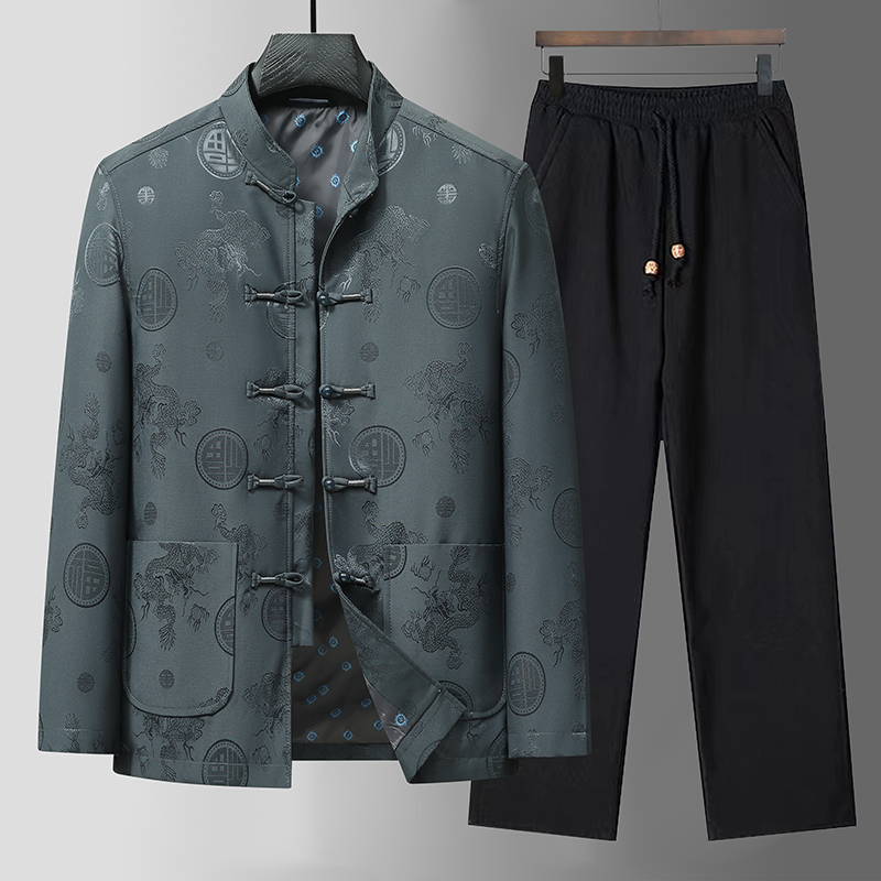 春秋唐装男爸爸棉衣外套套装中国风父亲加绒棉袄老人爷爷冬季汉服