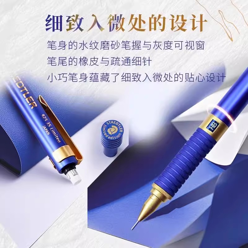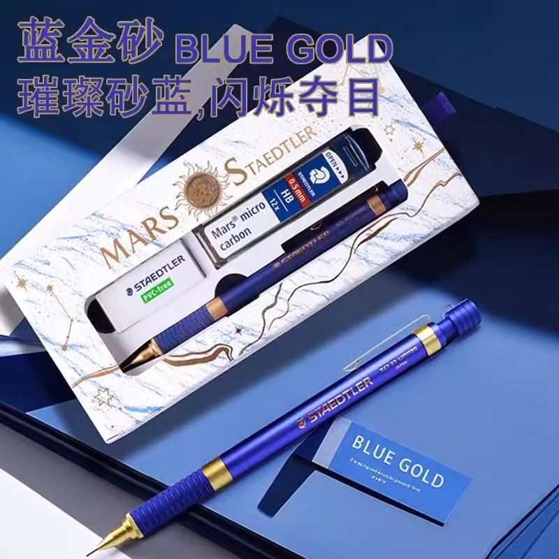 德国施德楼自动铅笔蓝金砂92535-05NW C1限定版重金属低重心自动铅笔设计漫画绘图制图手绘素描专用自动笔