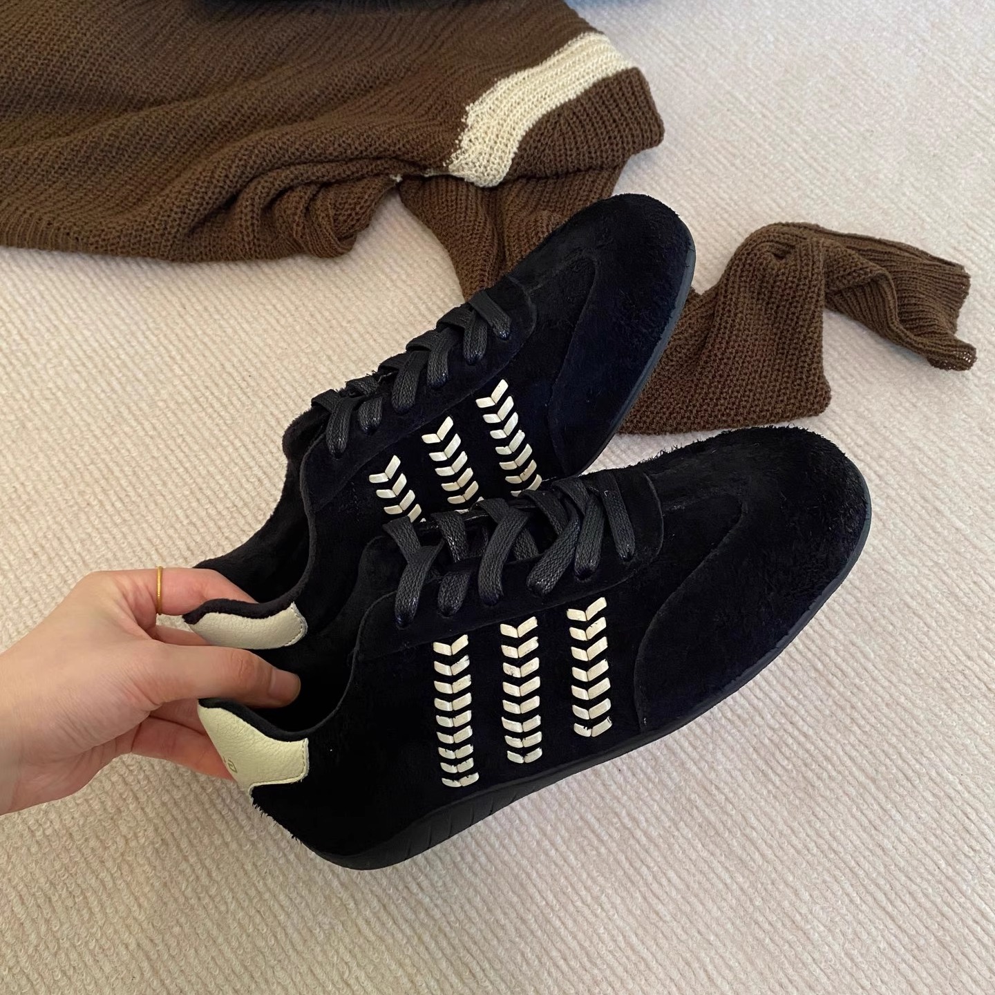 2025秋冬新款复古风时尚德训鞋女加绒外穿百搭系带休闲运动鞋板鞋