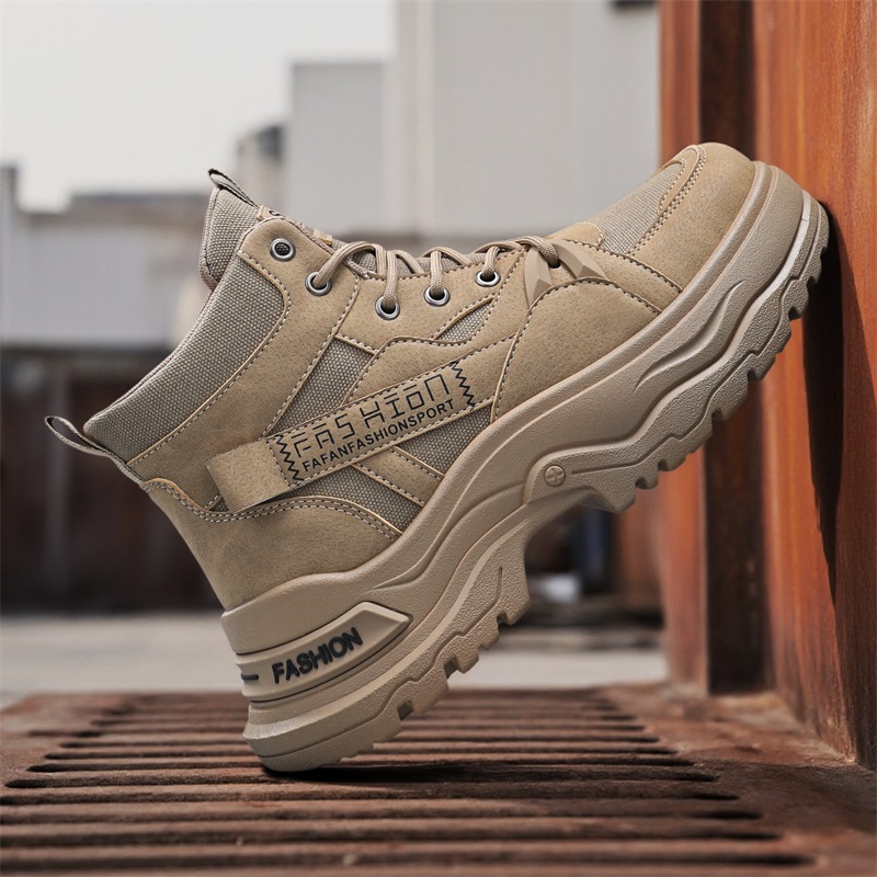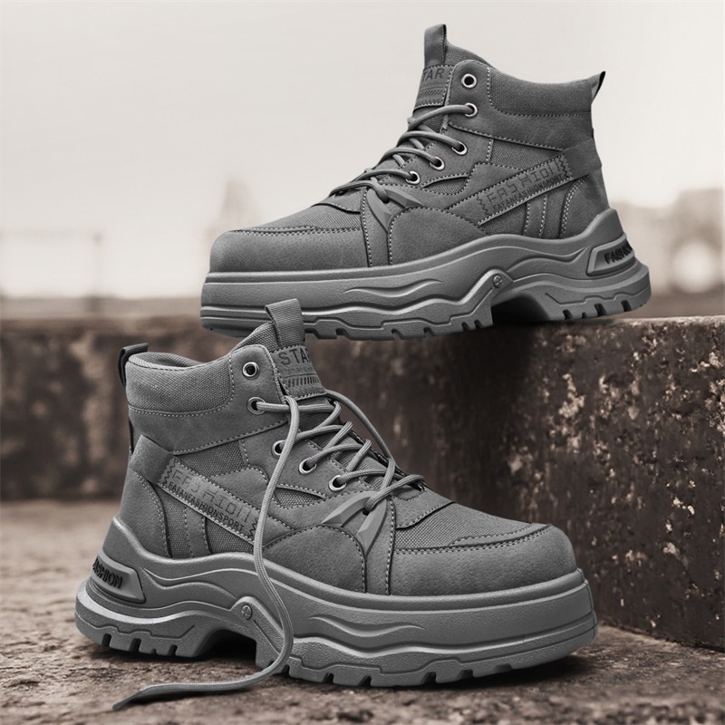 男鞋秋季休闲高帮防滑厚底英伦风潮流男士运动耐磨工作劳保工装鞋