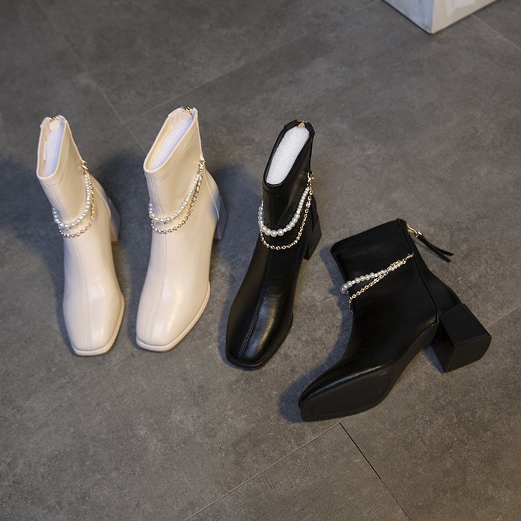 瘦瘦靴短靴方头白色高跟