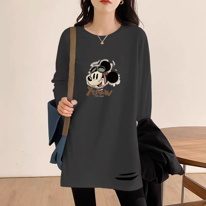 遮屁股中长款2025秋冬新款纯棉t恤女长袖洋气宽松破洞打底衫上衣