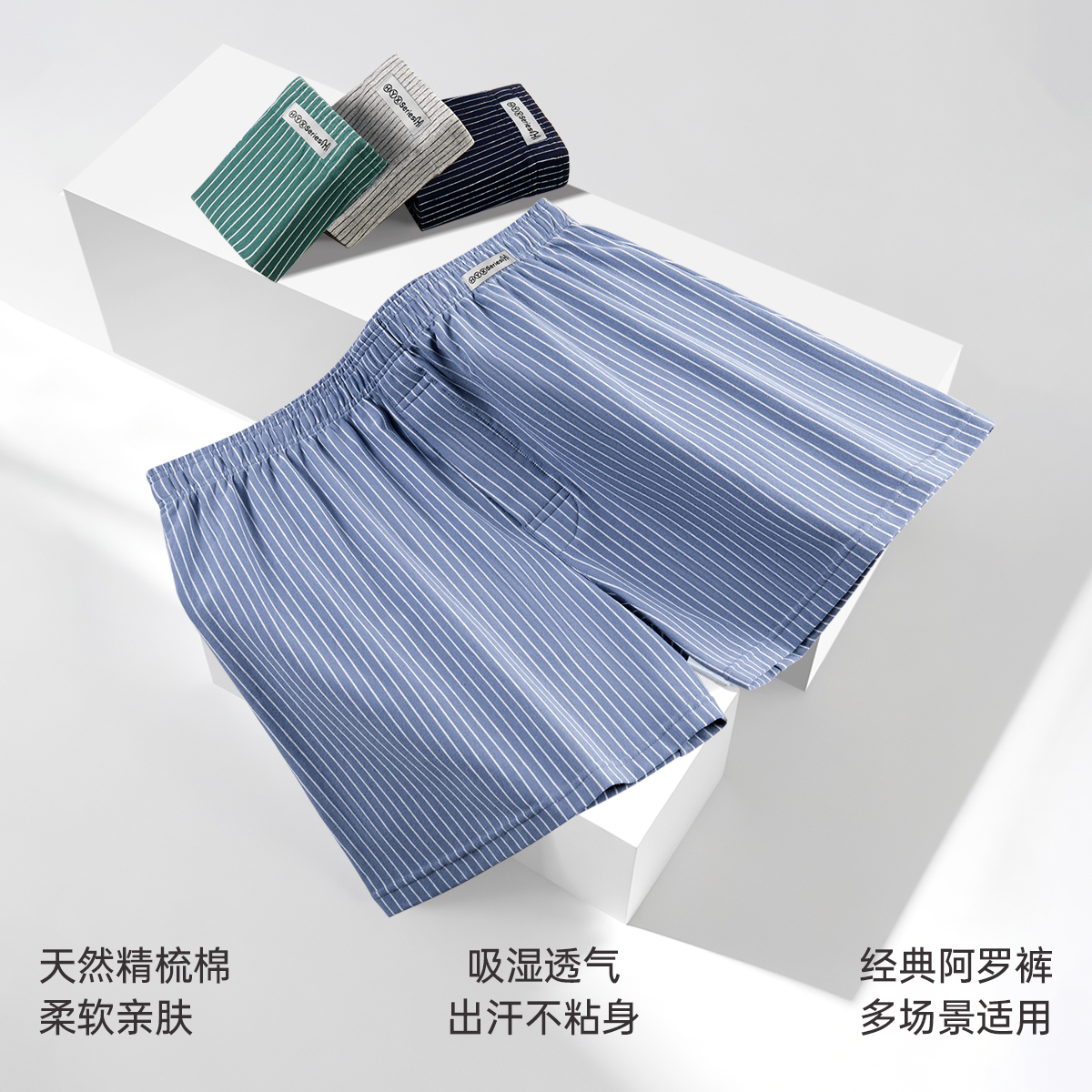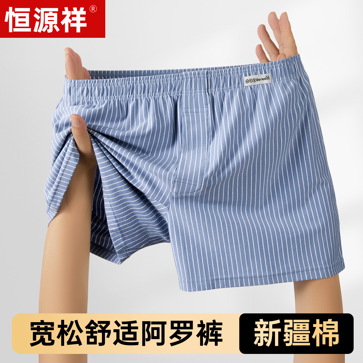 恒源祥宽松阿罗裤男士内裤纯棉透气平角裤大码秋冬款睡裤四角短裤