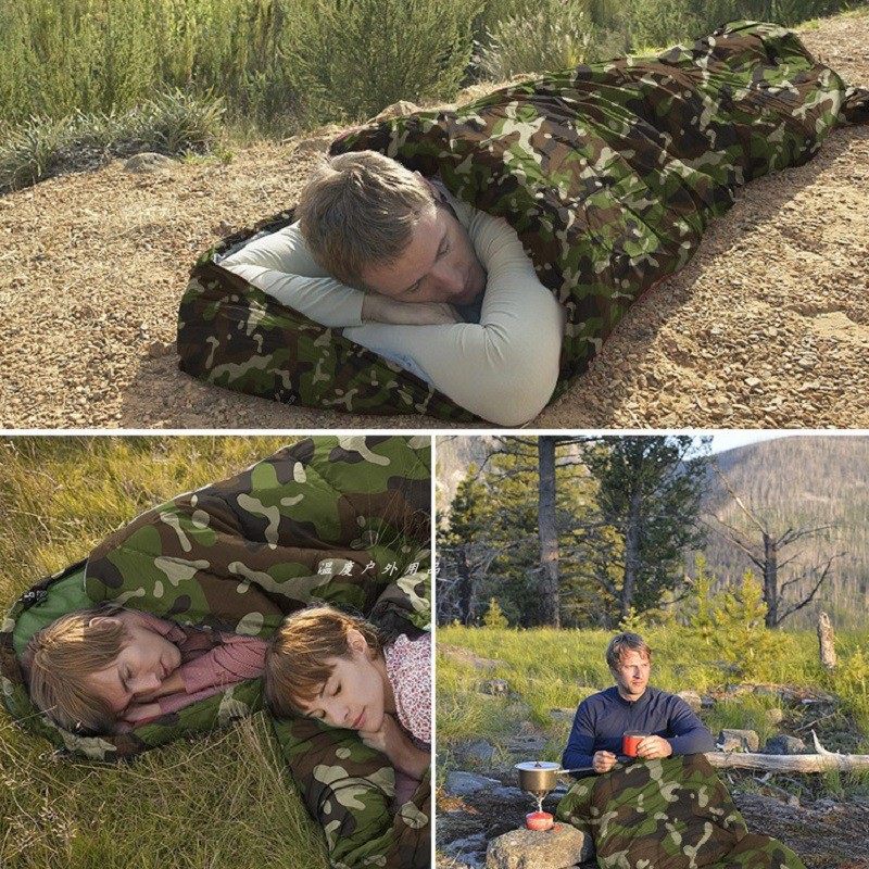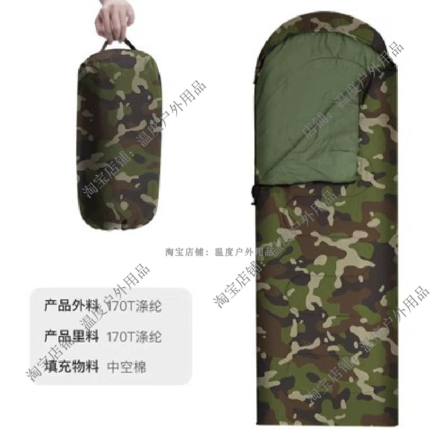 户外露营迷彩睡袋集训野营旅行成人信封式保暖四季通用冬季加厚