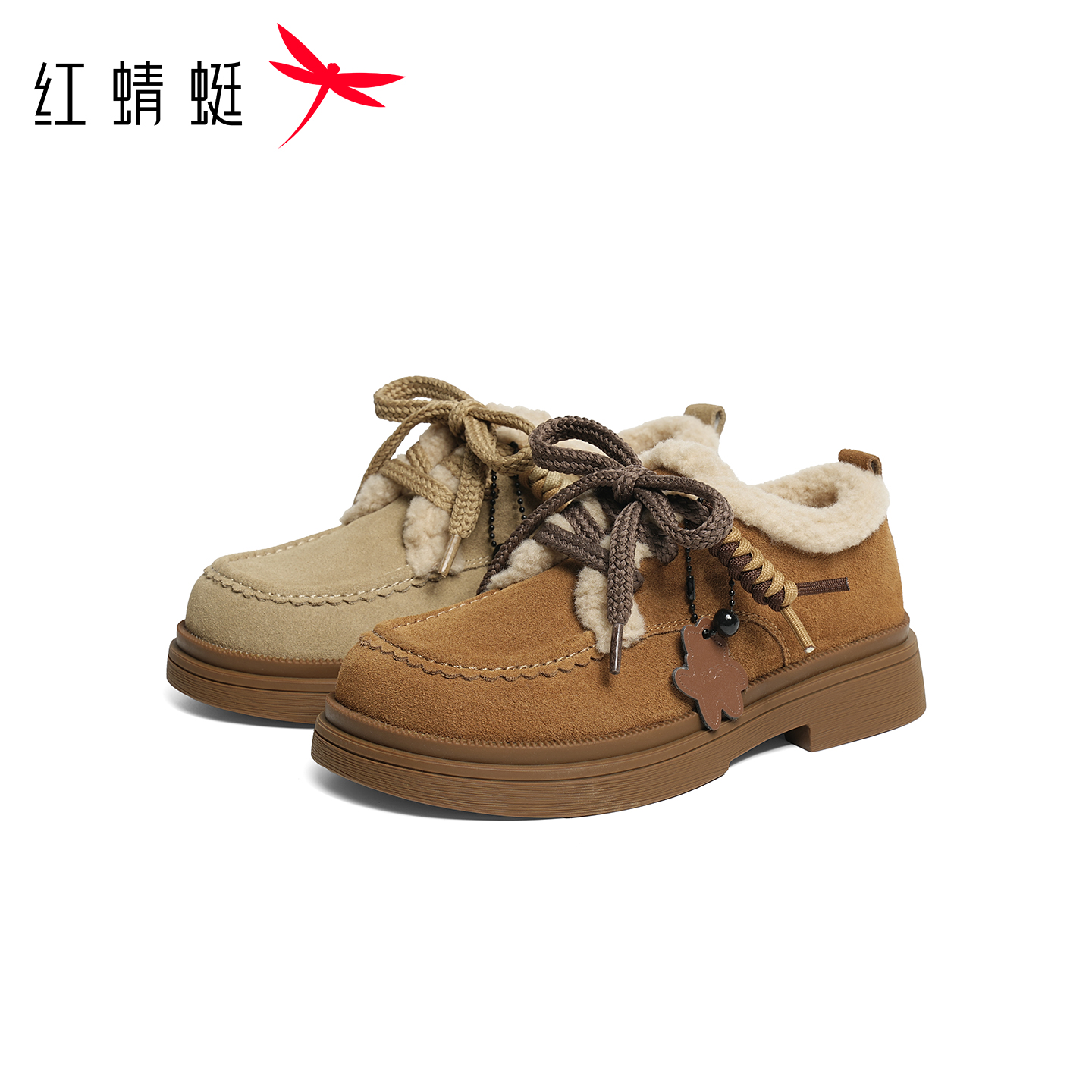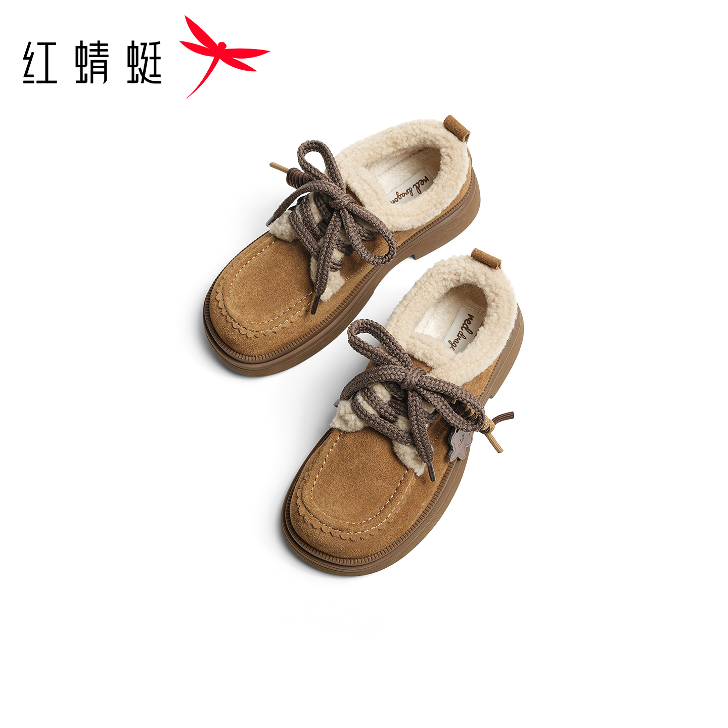 红蜻蜓加绒勃肯鞋厚底雪地靴棉鞋