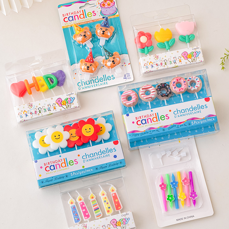 韩系烘焙蛋糕装饰蜡烛ins复古爱心笑脸螺纹小熊蜡烛生日甜品摆件