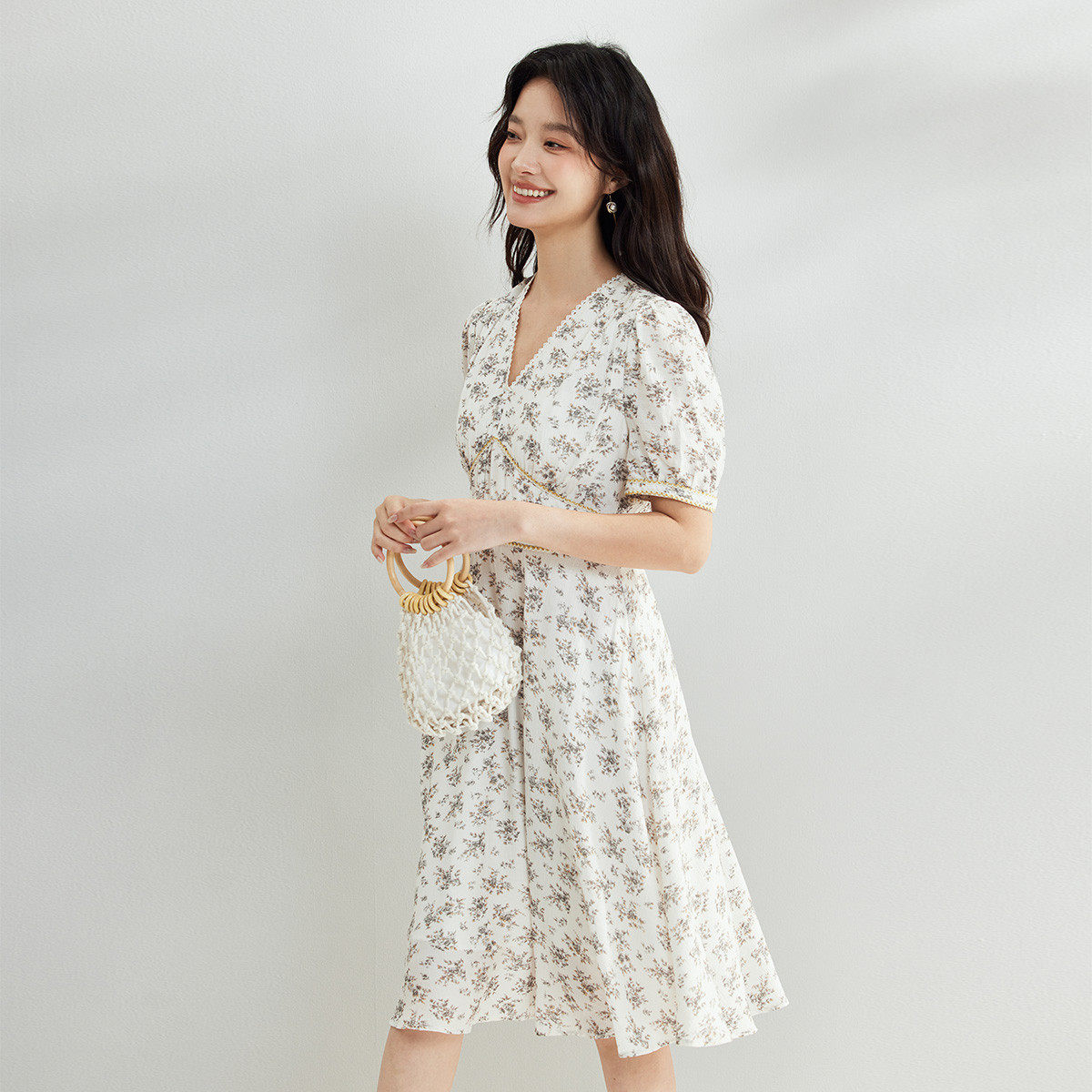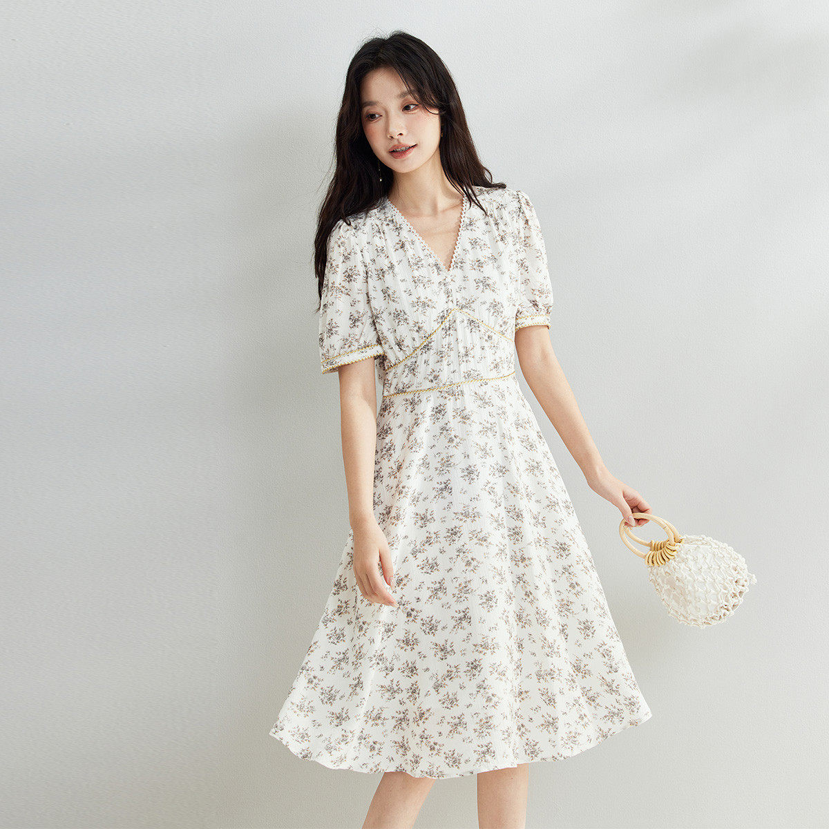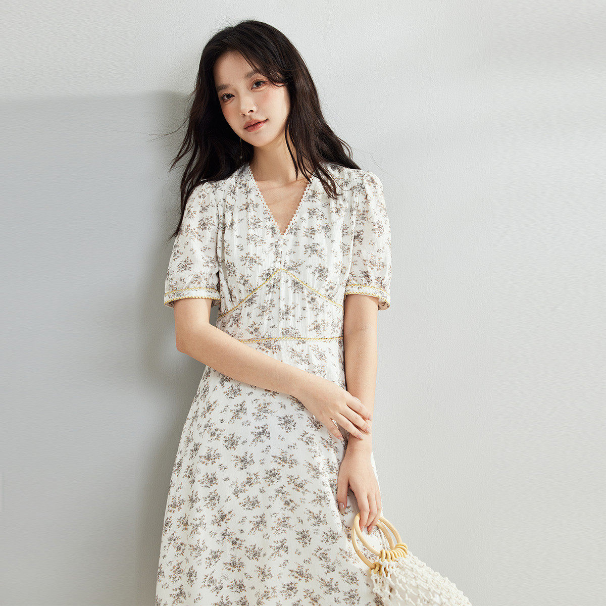 茵曼2026夏季新款法式碎花雪纺连衣裙女特别独特漂亮收腰巨好看的