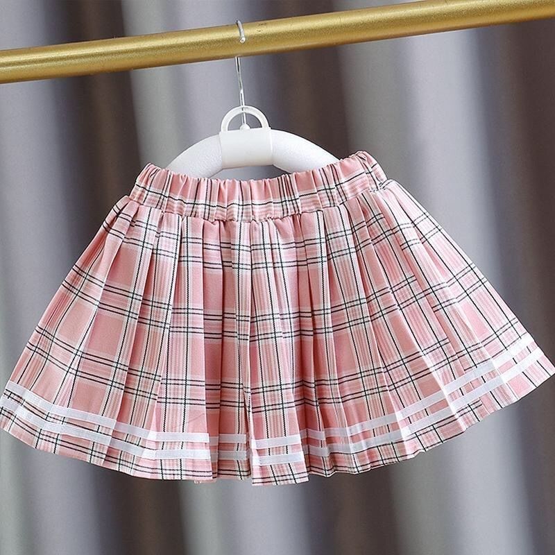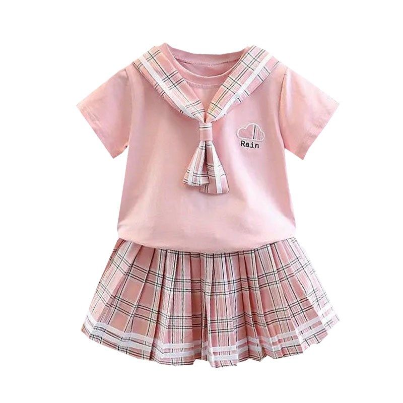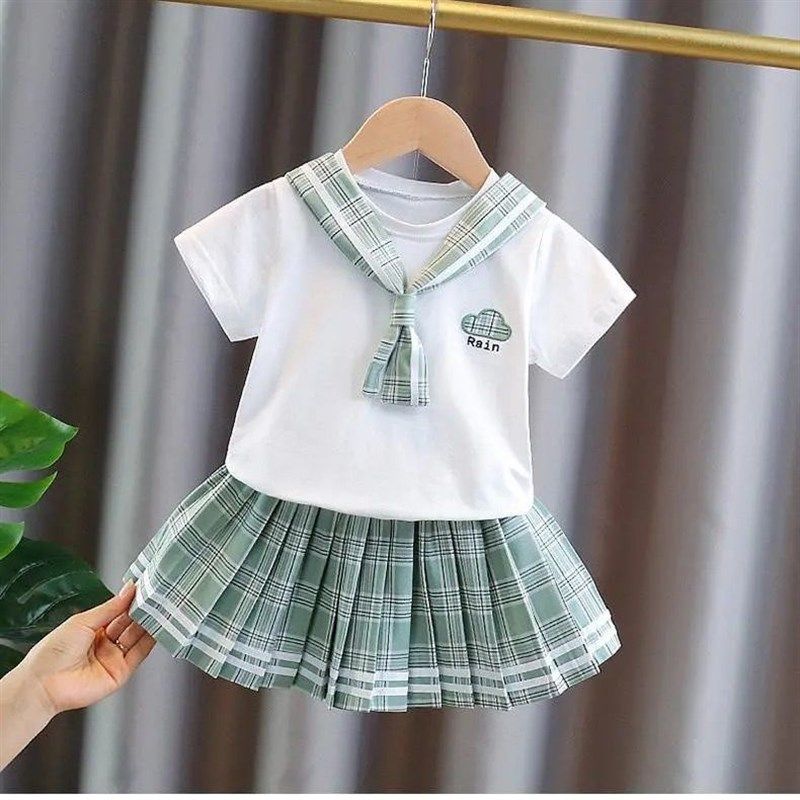 女童套装学院风百褶裙儿童洋气宝宝短袖薄格子夏季套裙时尚两件套