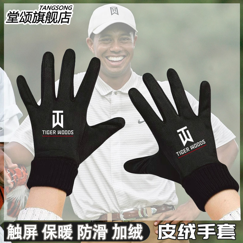 高尔夫球老虎伍兹泰格 Woods球迷冬季加绒保暖男女可触屏骑行手套
